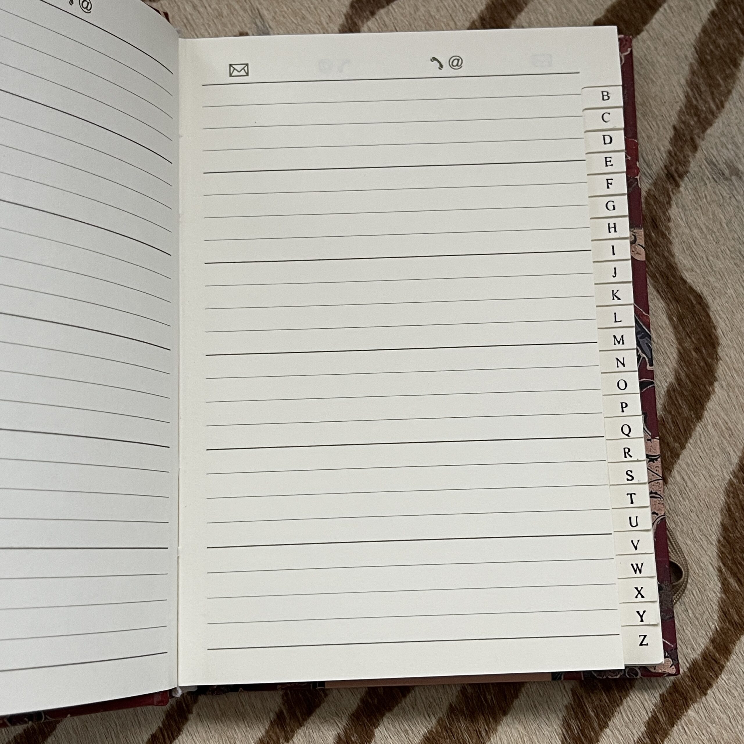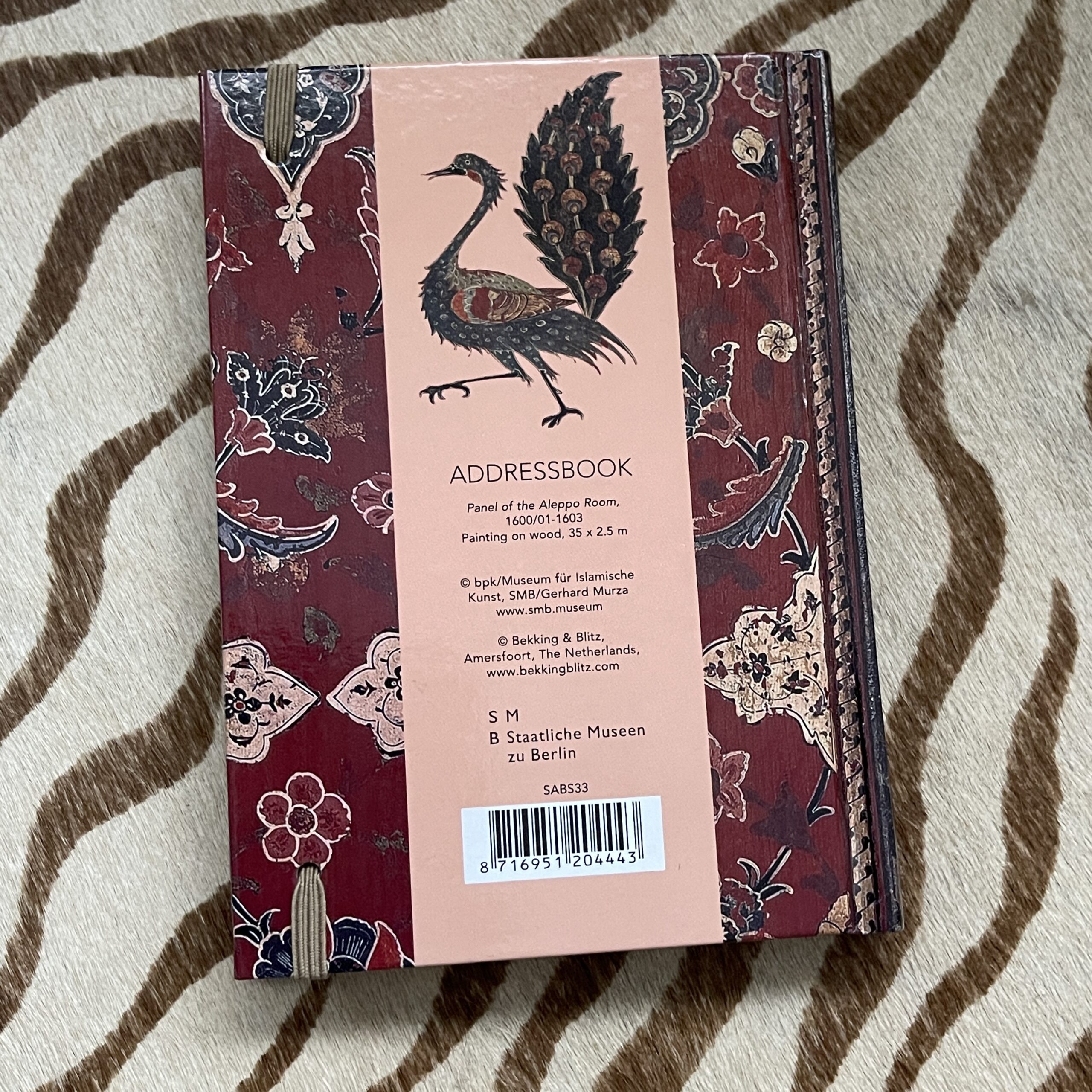 Mooi adresboekje met pauwprint en sluitelastiek. Handig uitgesneden alfabet zodat je je vrienden en familie snel kunt vinden, jawel!