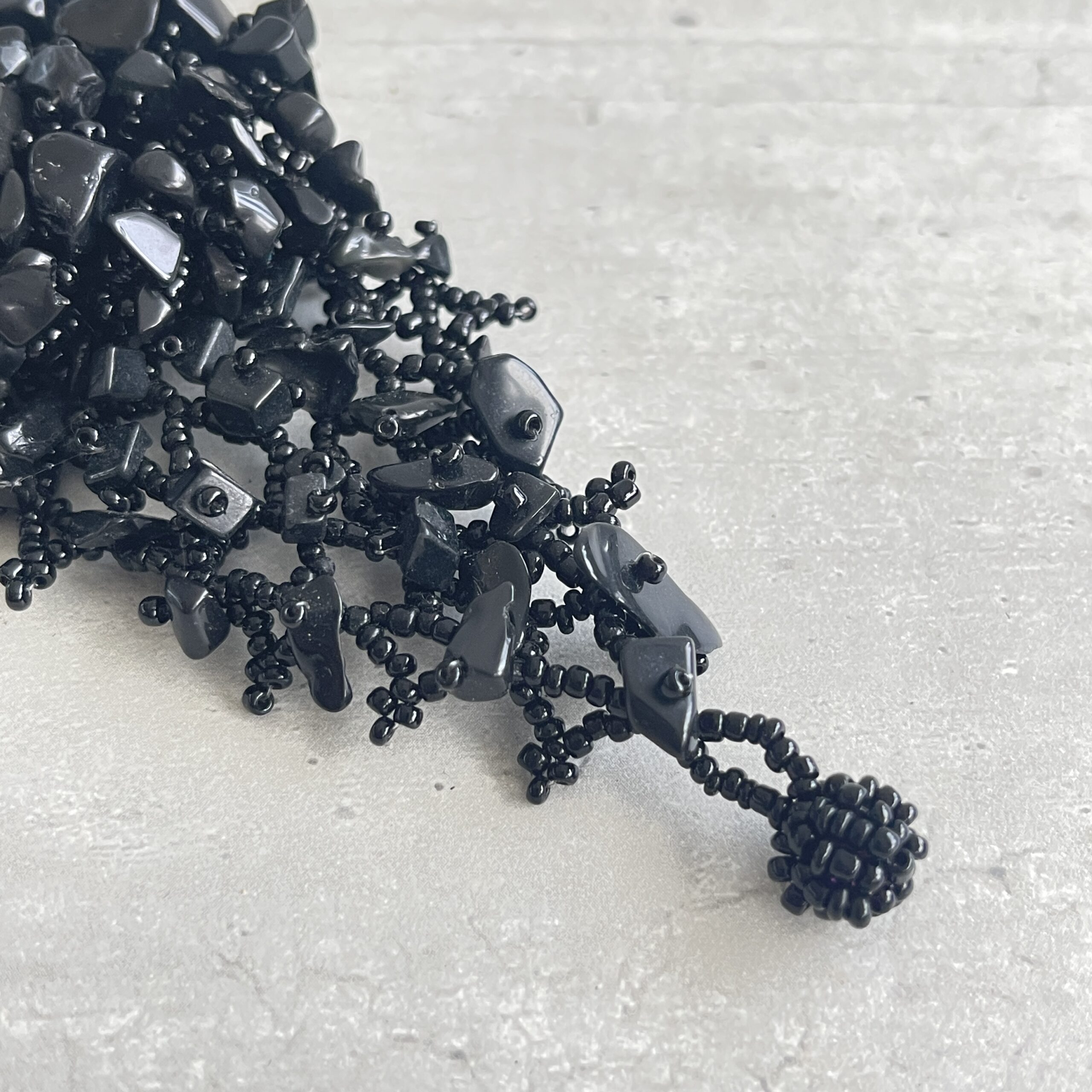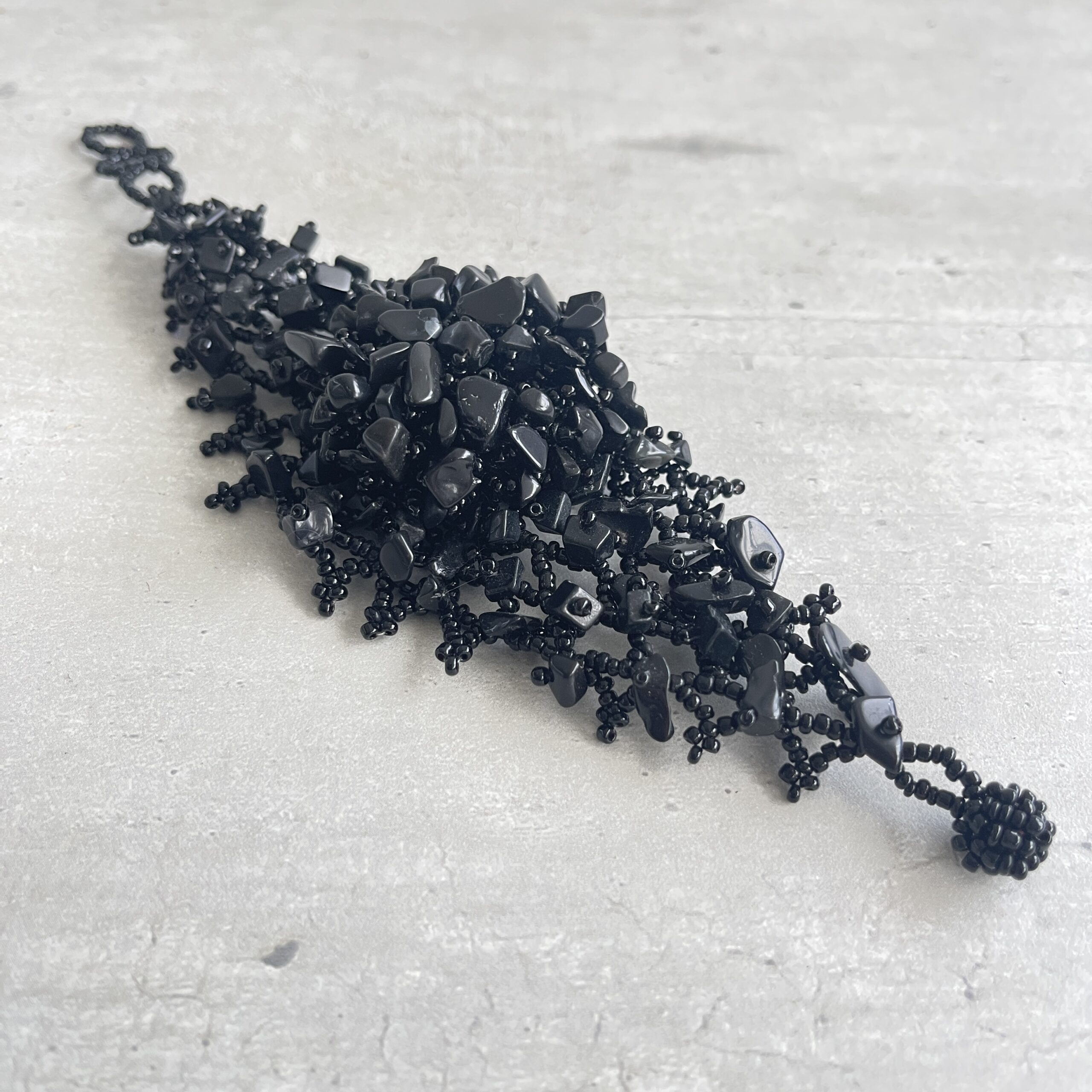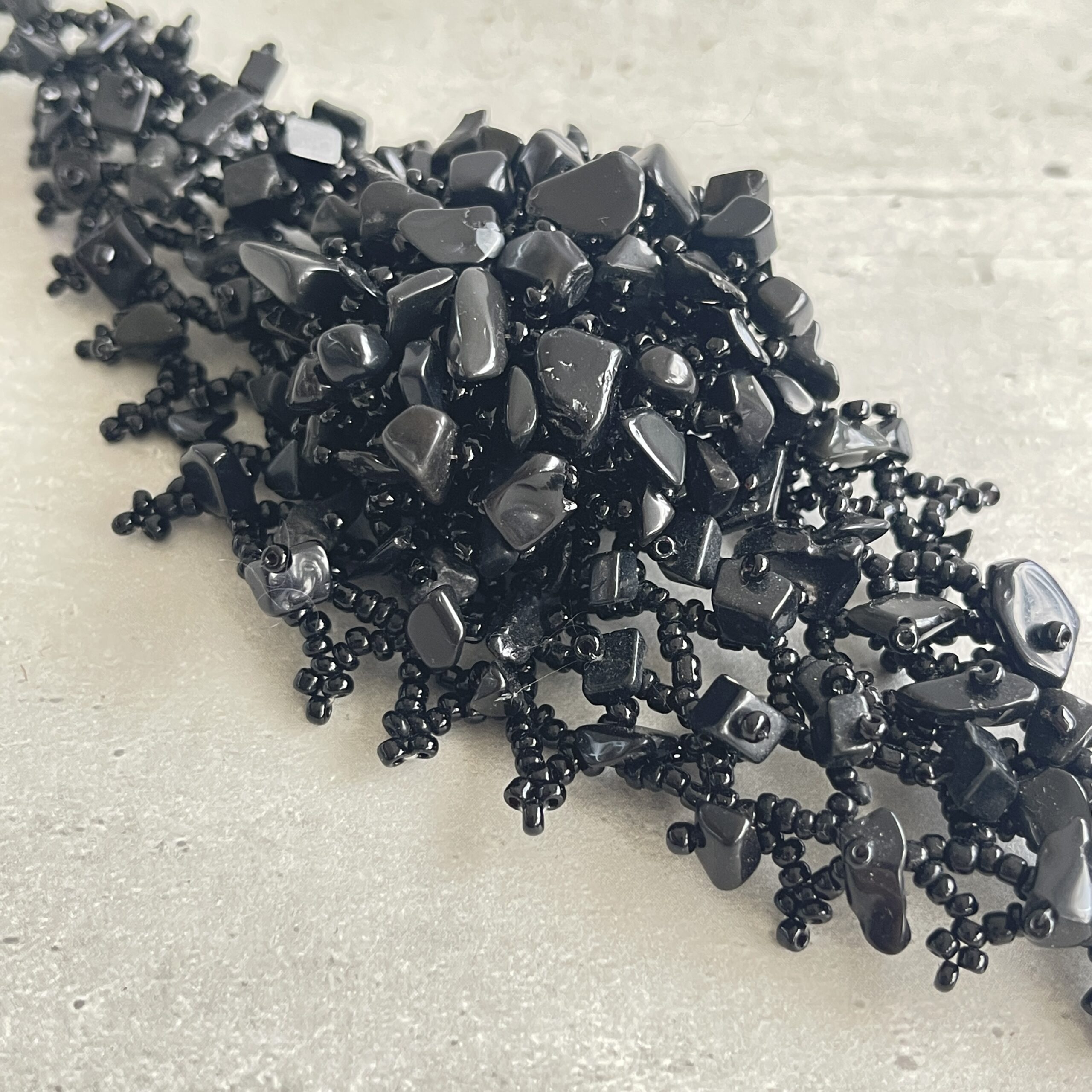 Mooie stijlvolle armband met zwarte kraaltjes en steentjes. Leuk voor de zomer met korte mouwen, maar ook heel feestelijk bij een cocktailjurkje bijvoorbeeld.