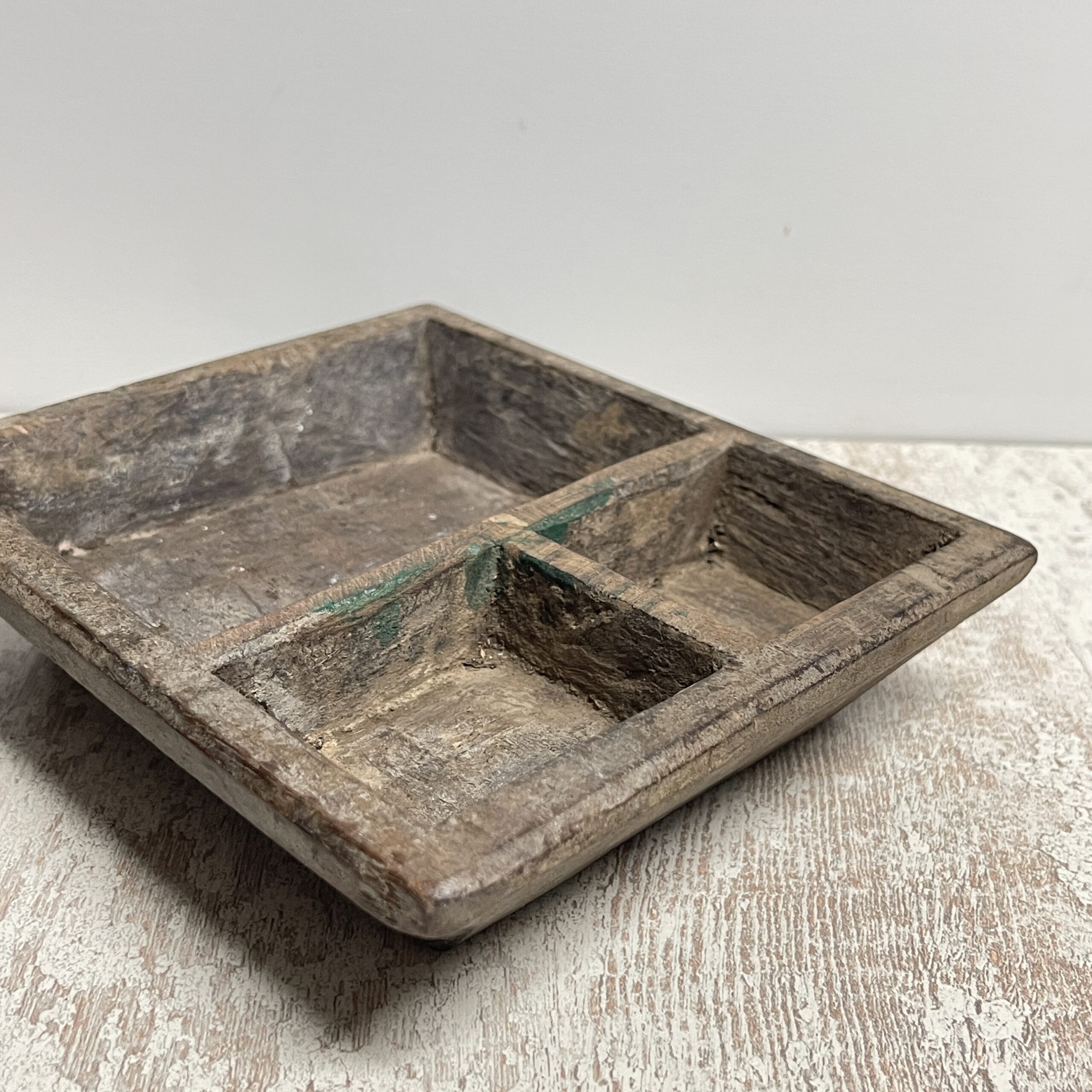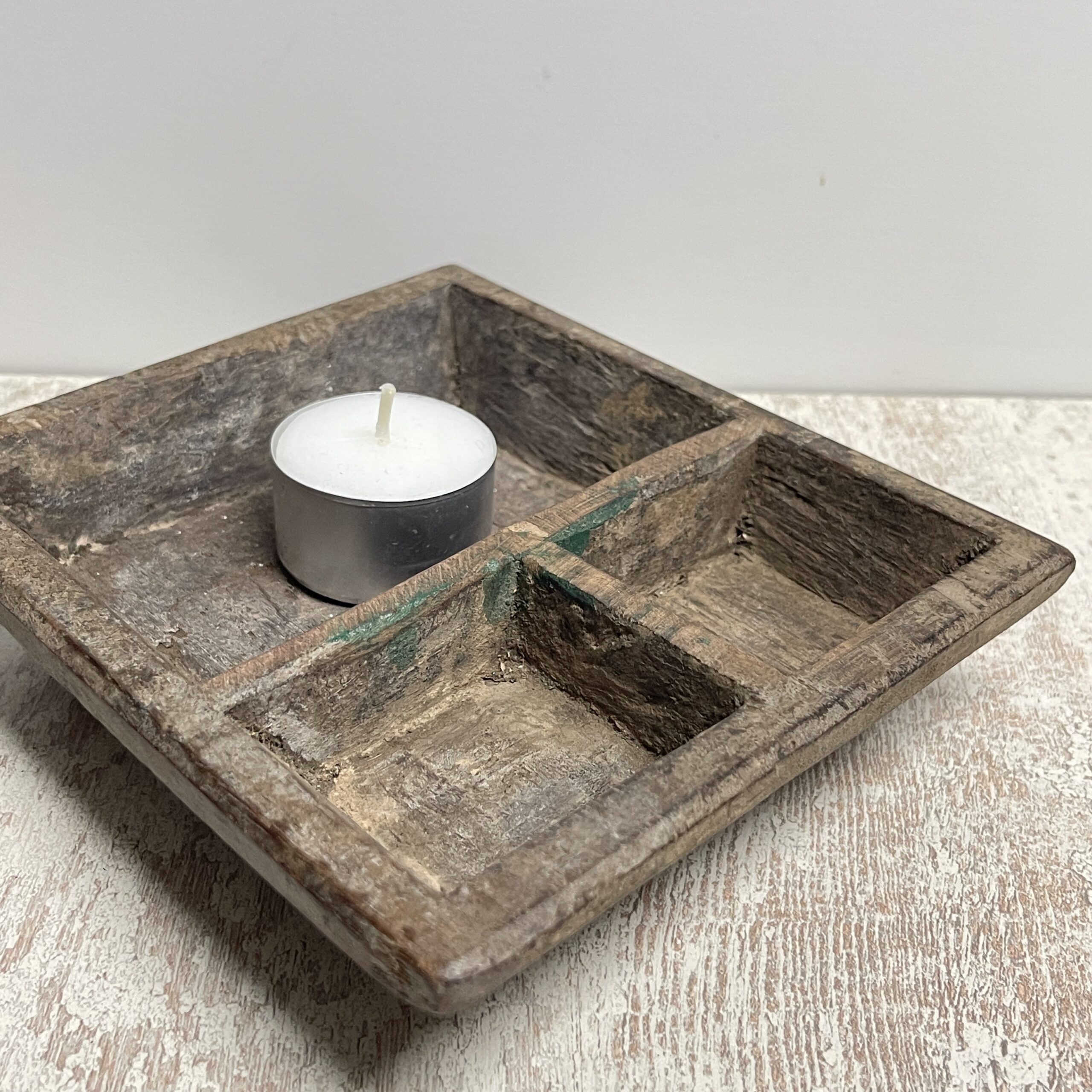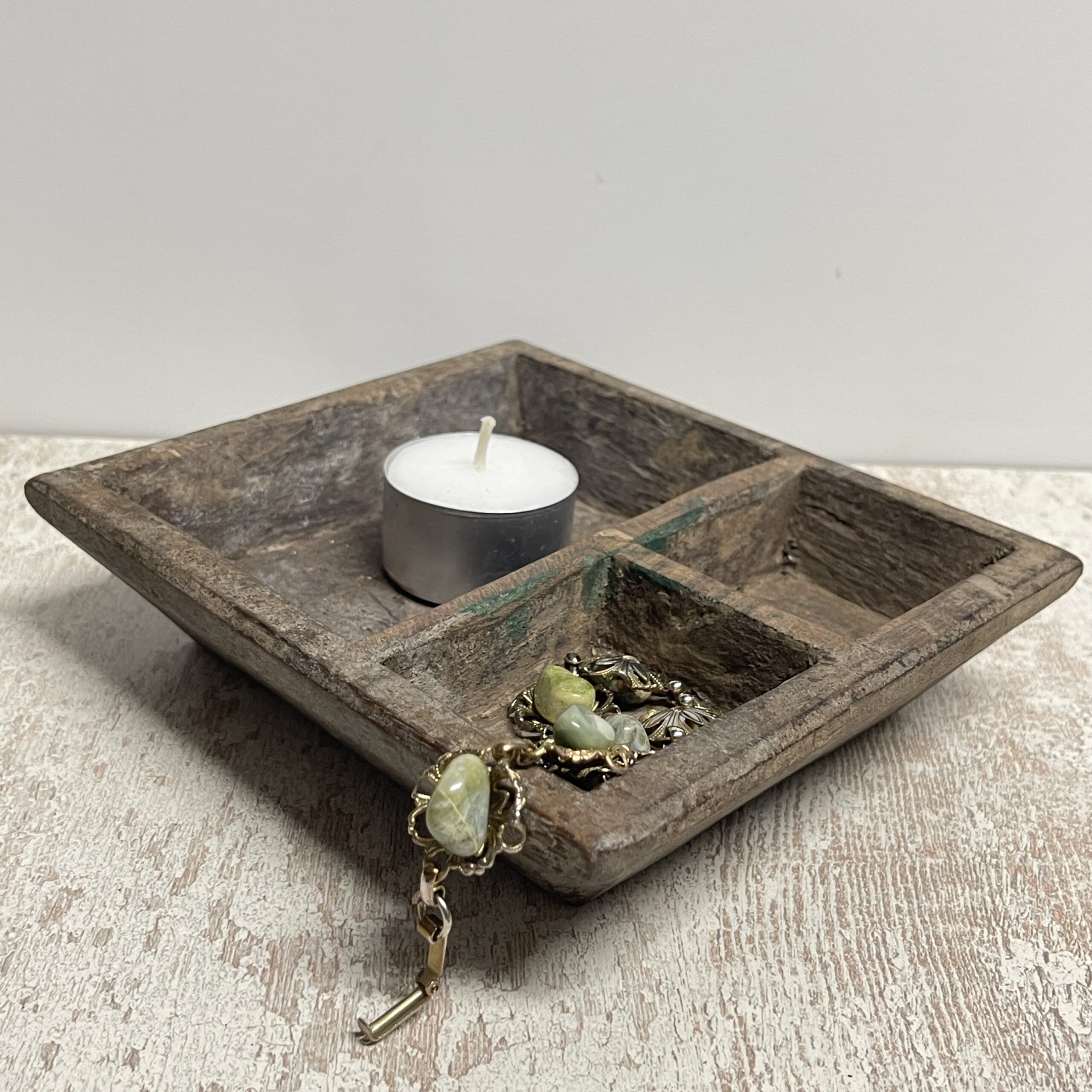 Leuk boho authentiek rustiek vierkant houten bakje uit India voor van alles en nog wat. Je kunt ‘m gebruiken om sieraden te ordenen, theelichtjes in te branden, in de keuken et cetera.