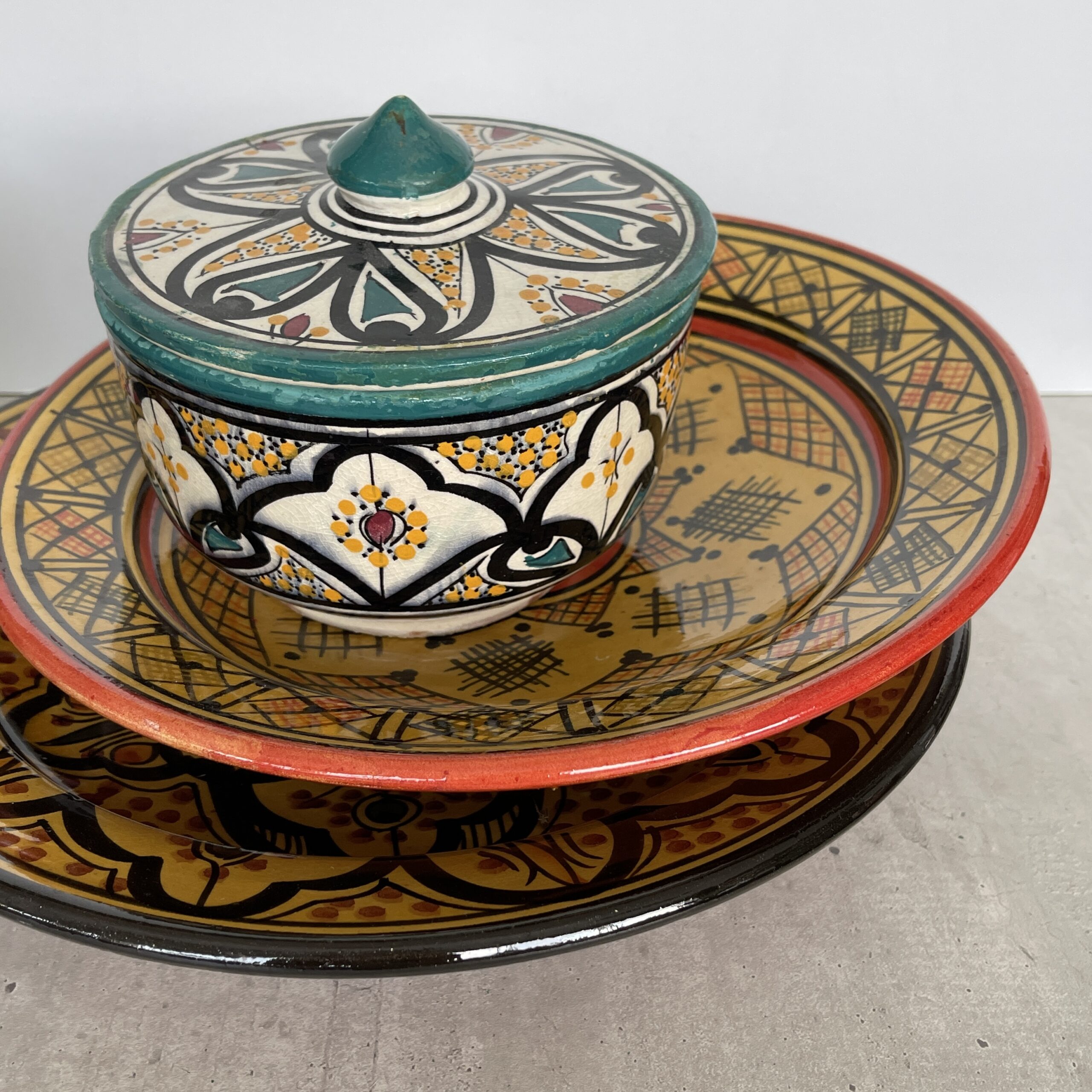 Dit boho Marokkaanse bord is handmade with love. Hou je van perfect, dan is dit servies niks voor jou. Hou je van handgemaakte producten, waar de ambacht en de liefde voor het product aan te zien en te voelen is, dan is dit voor jou! Gemaakt van aardewerk en handbeschilderd.