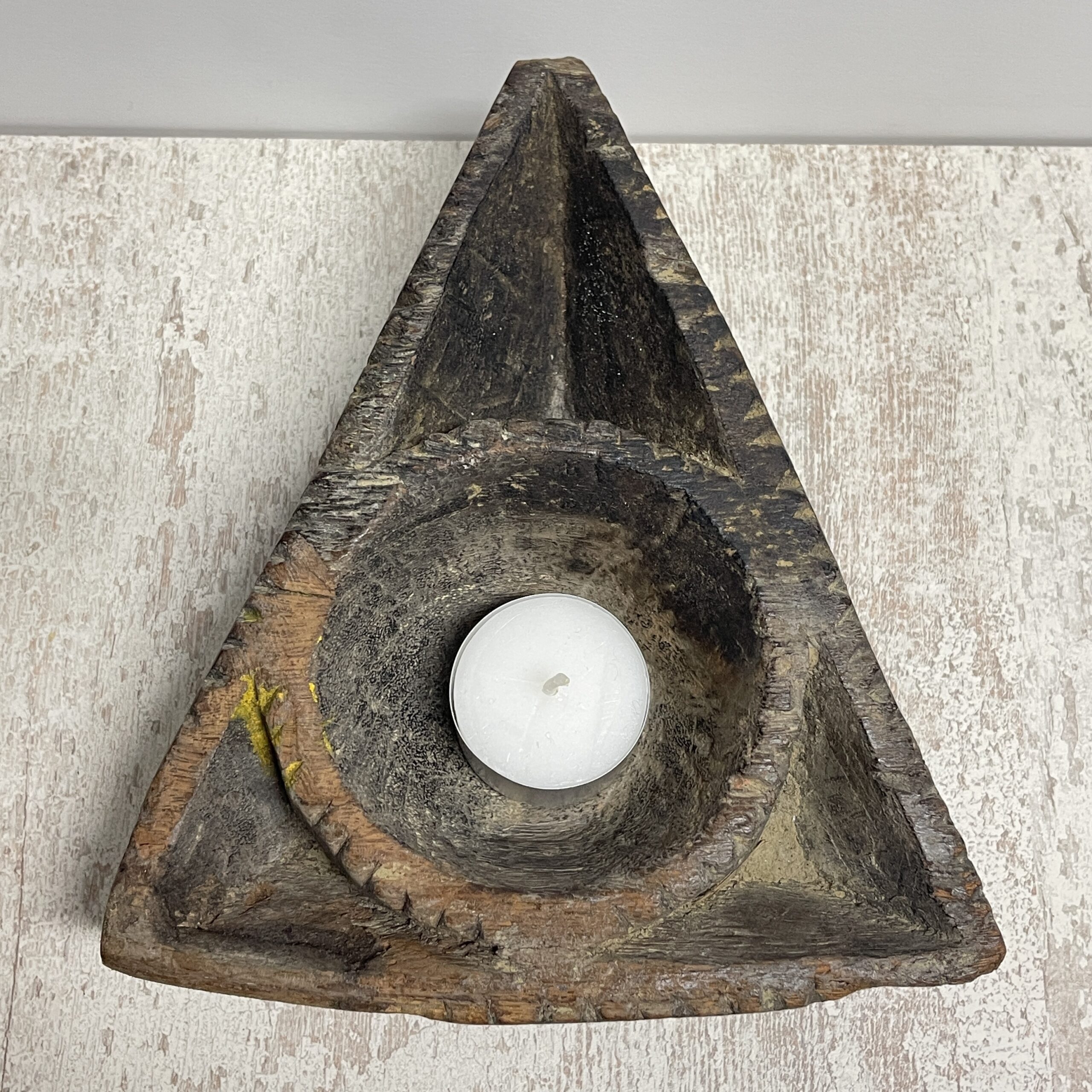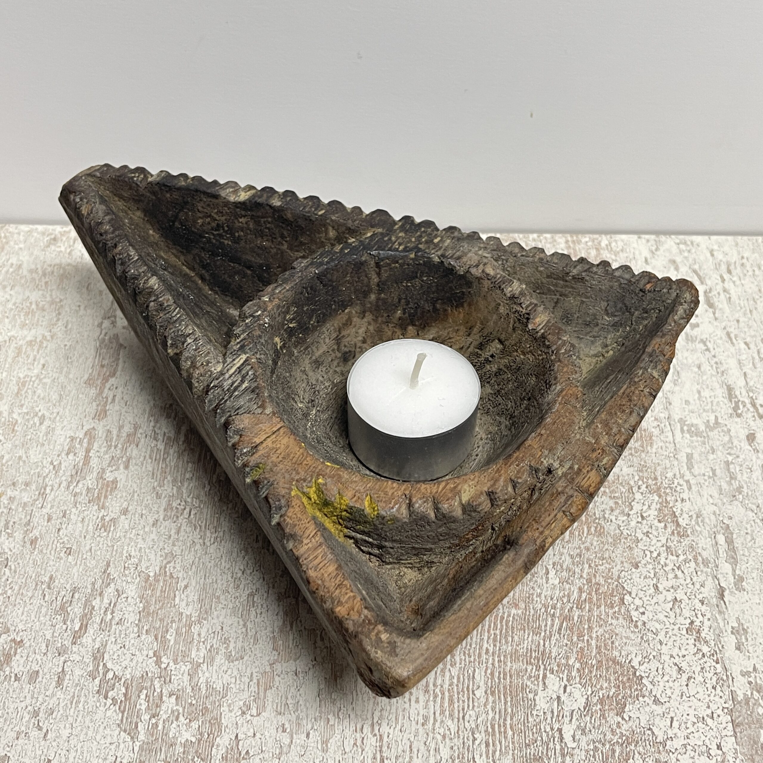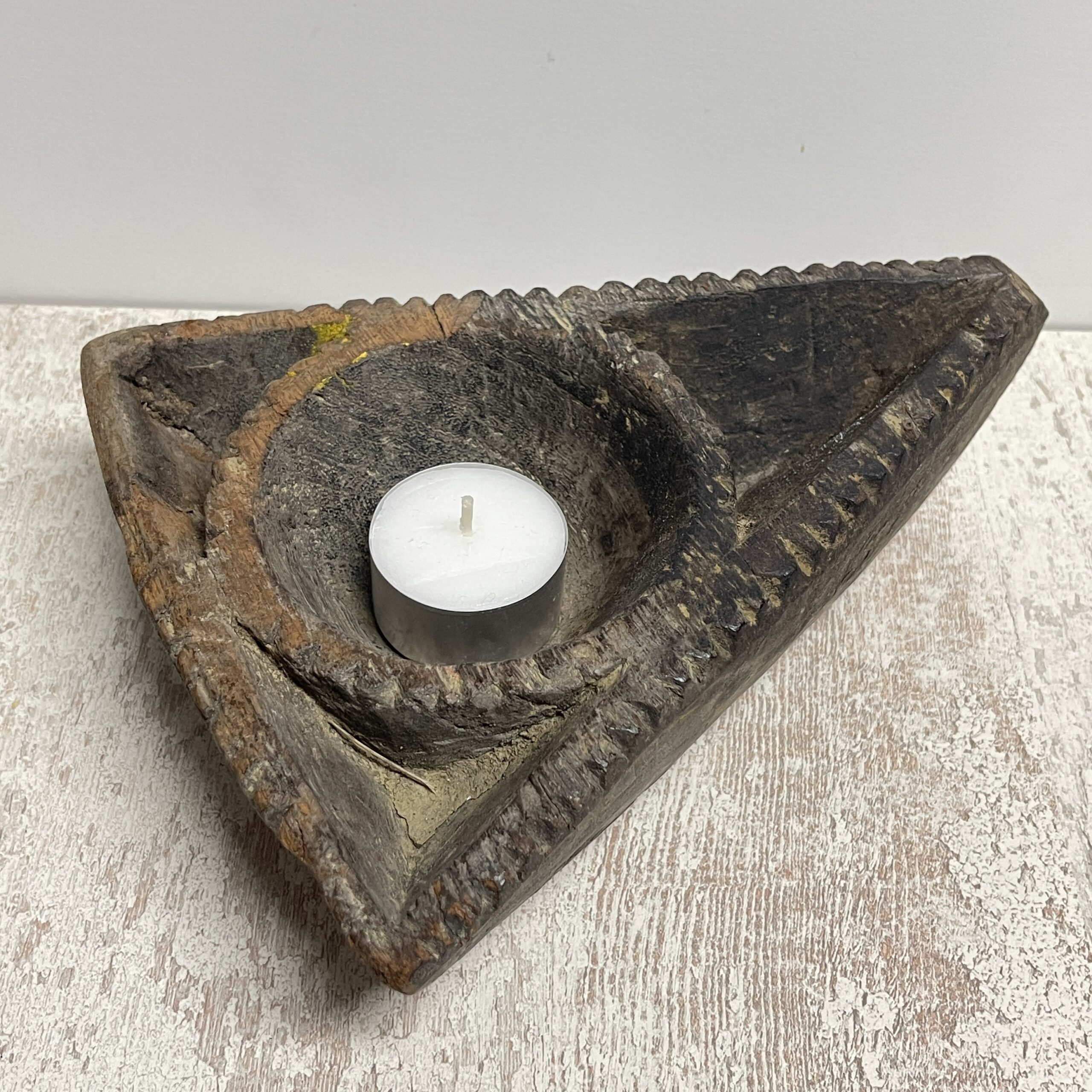 Leuk boho authentiek rustiek zogenaamd offerbakje uit India. Nu kun je ‘m  voor van alles en nog wat gebruiken. Zoals een theelichtje in branden.
