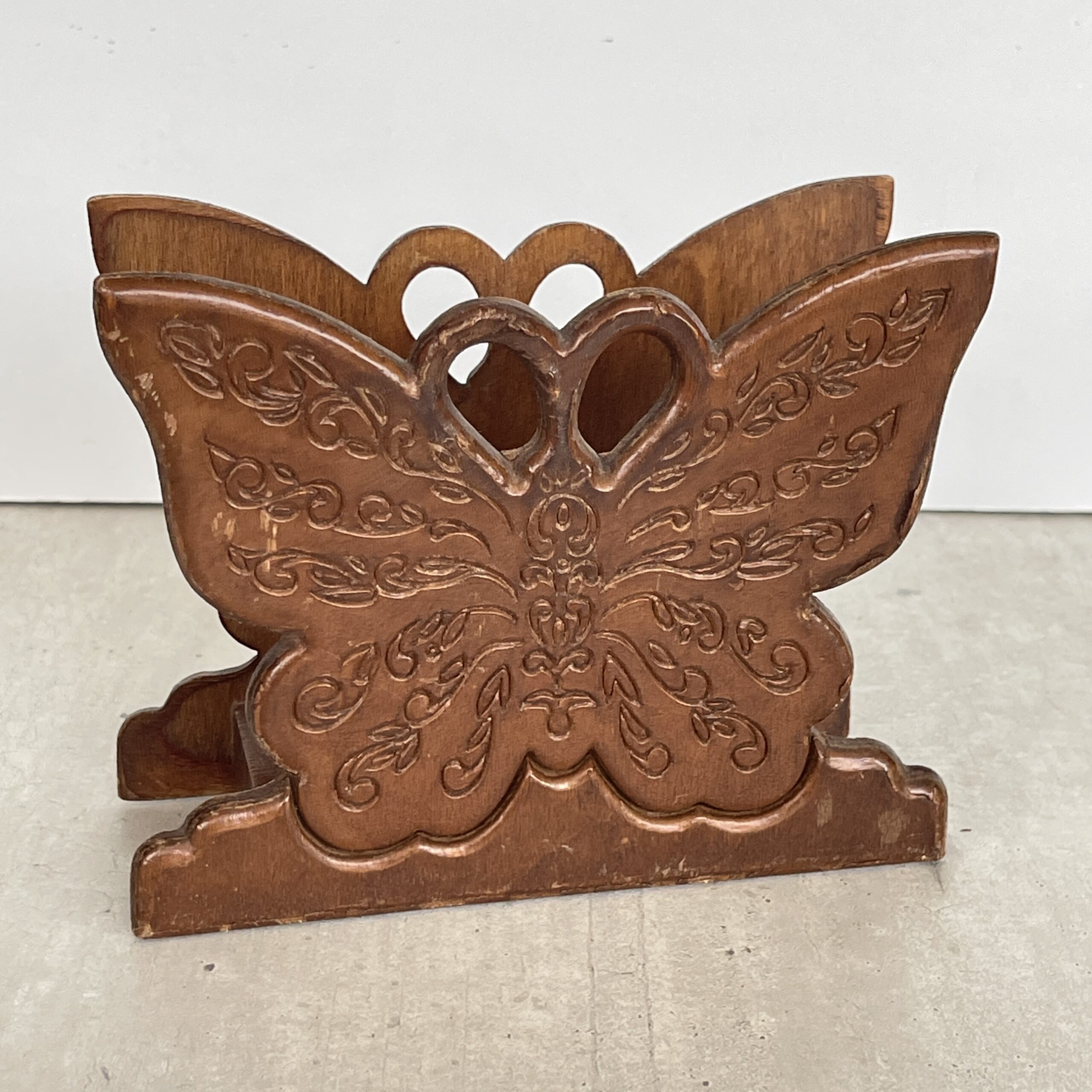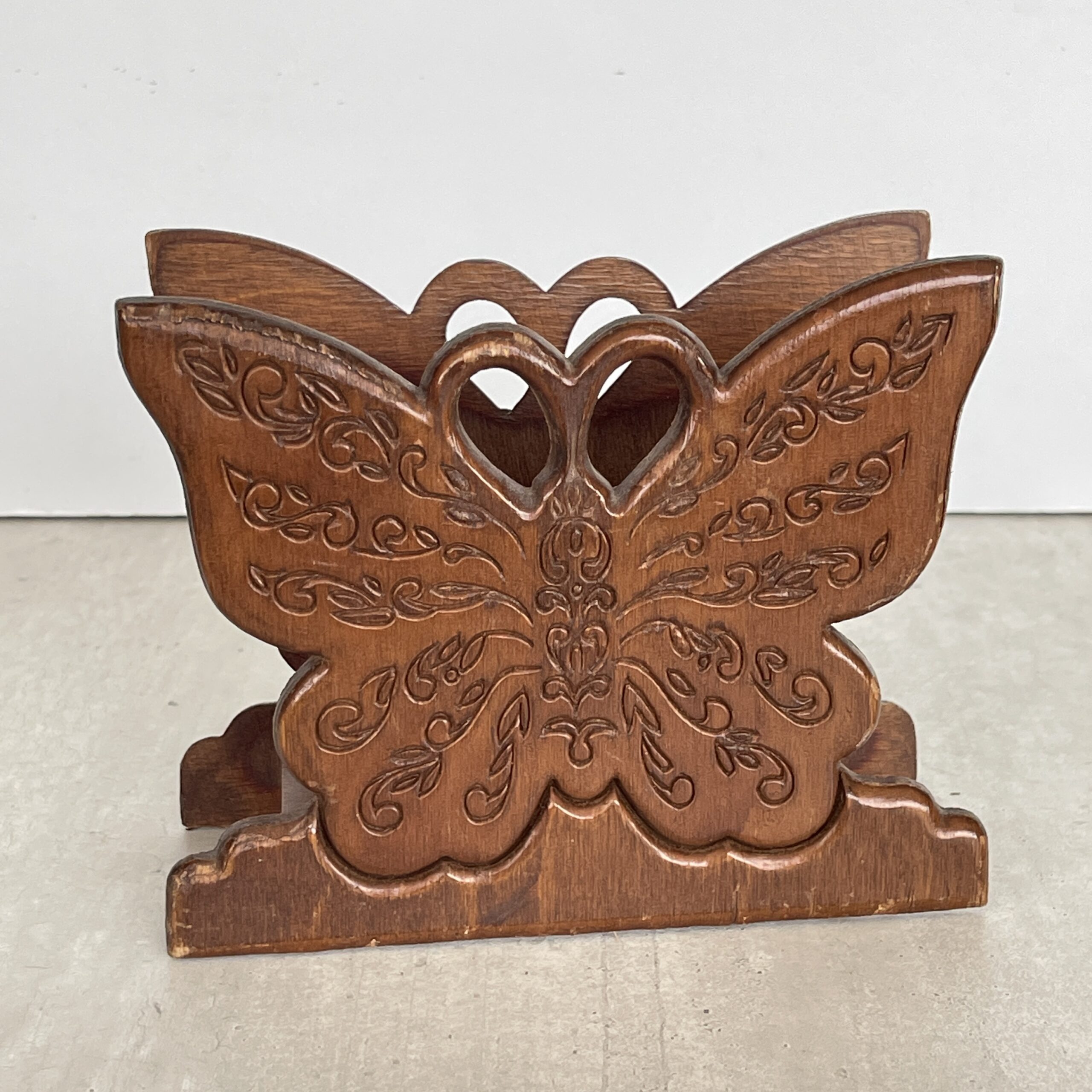 Mooie houten servettenstandaard in de vorm van een sierlijke vlinder.