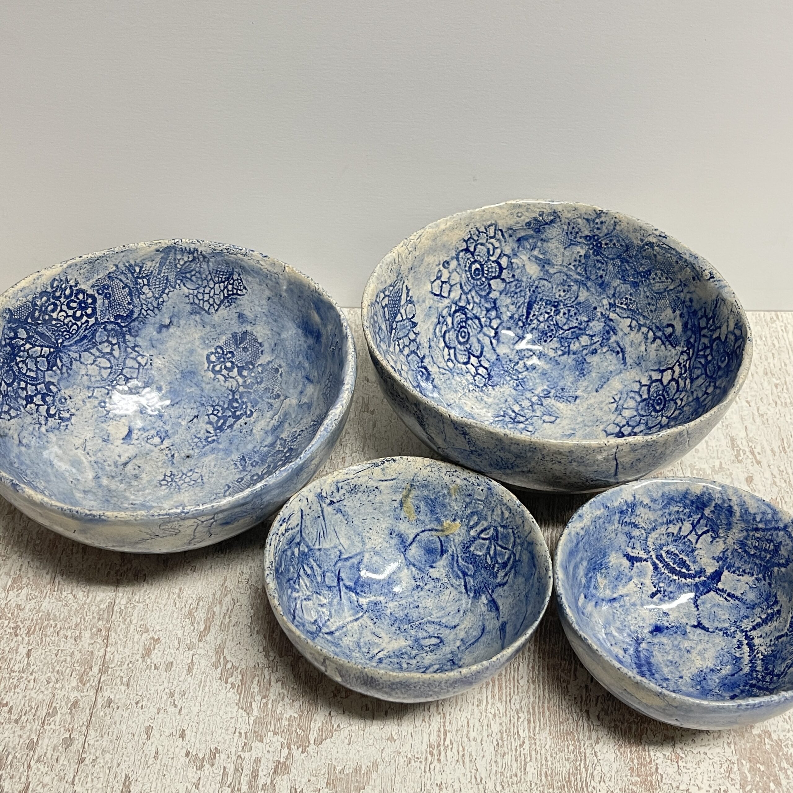 Ben je ook zo gek op handgemaakt keramiek? Dan zijn deze prachtige kommen wat voor jou! We hebben er een paar, in twee formaten en ze zijn allemaal voorzien van ‘kantwerk’. Ze zijn bol en ’tuimelen’ dus een beetje op tafel. Leuk met zoutjes bijvoorbeeld of brod, of kleine verzamelingen.