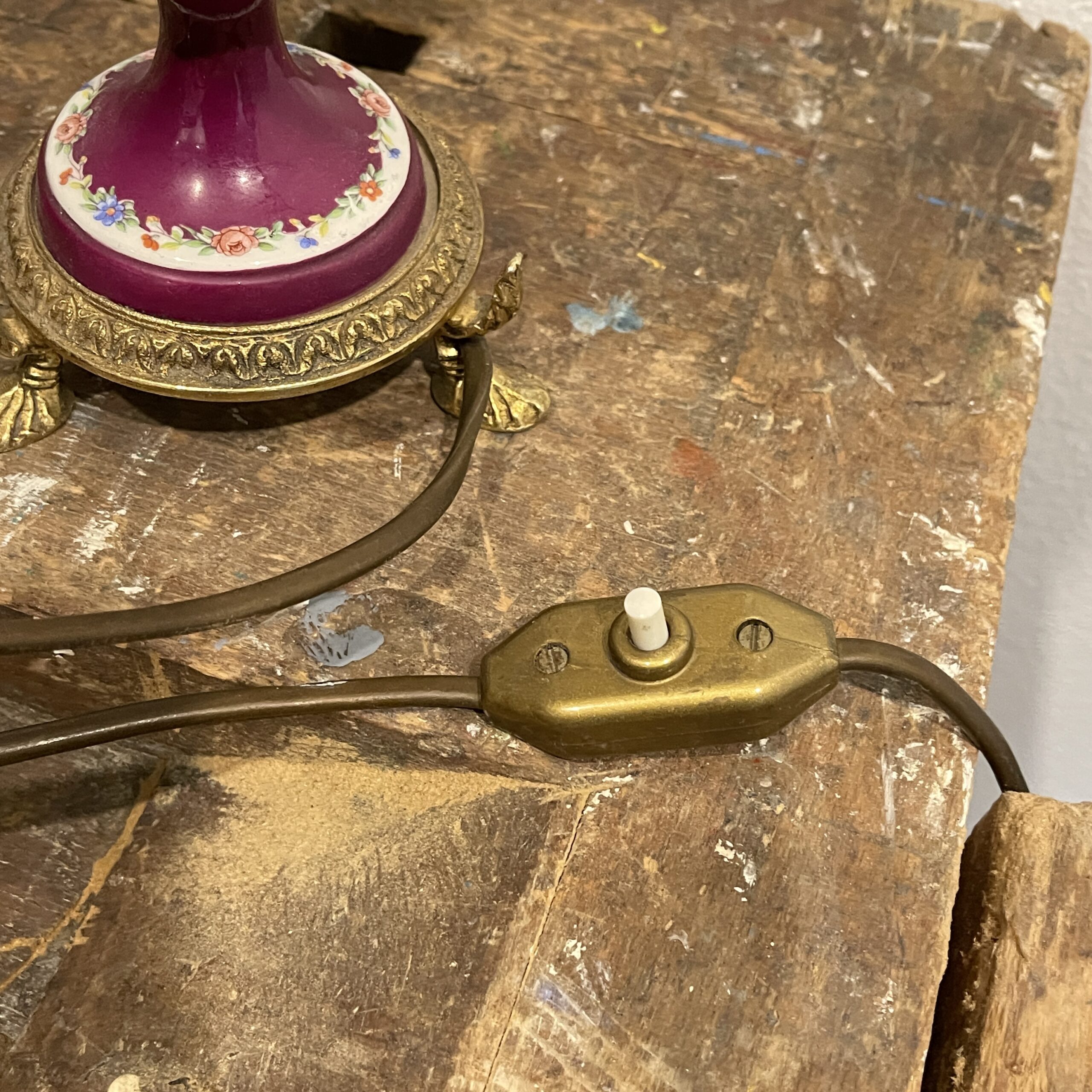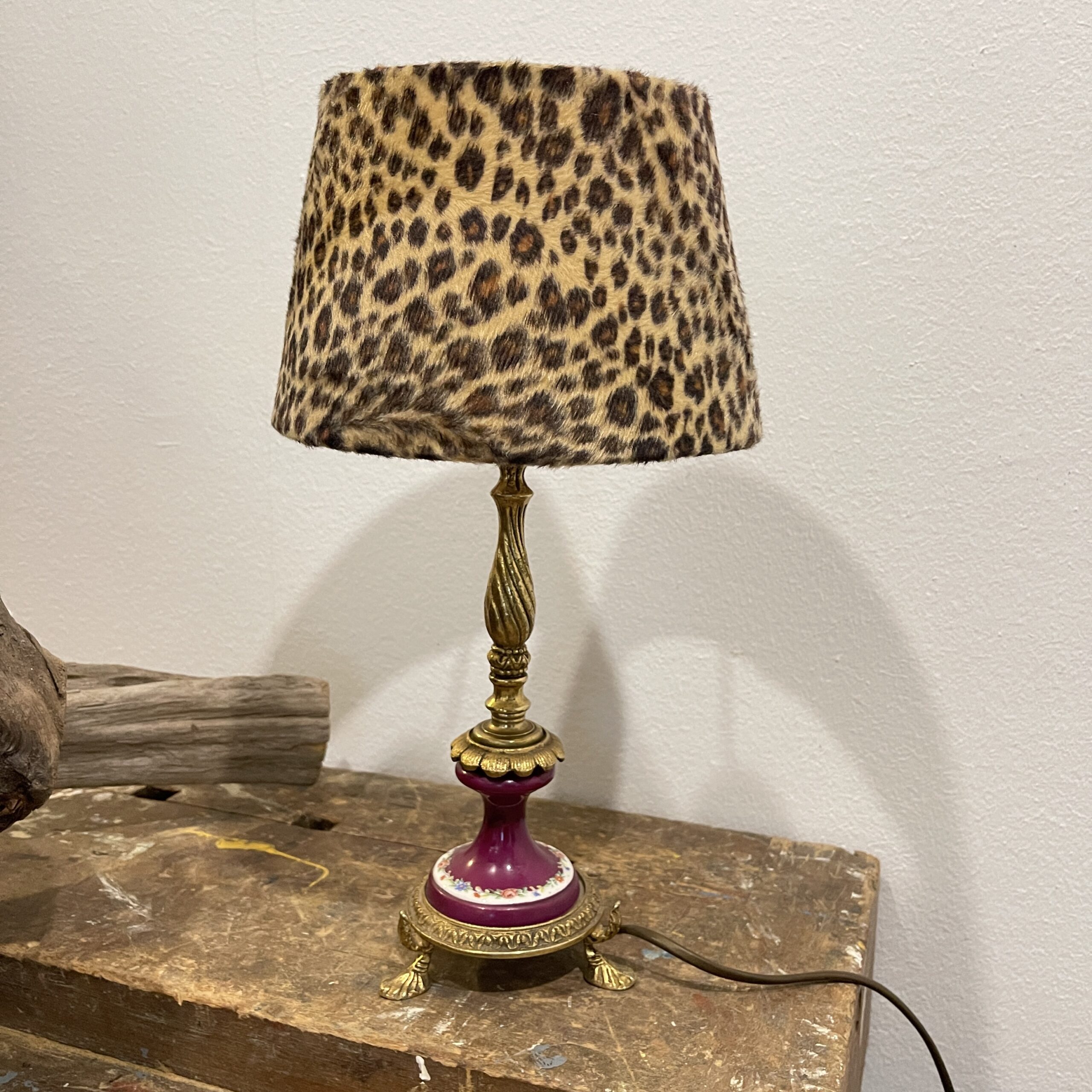 Wat een beauty, deze vintage Franse tafellamp met messing pootjes. We noemen ‘m Marie Antoinette.. want ehh.. Frans! Misschien stond ‘ie wel te shinen in Parijs! De panter lampenkap voegden we toe, zodat hij iets van nu én van vroeger heeft!