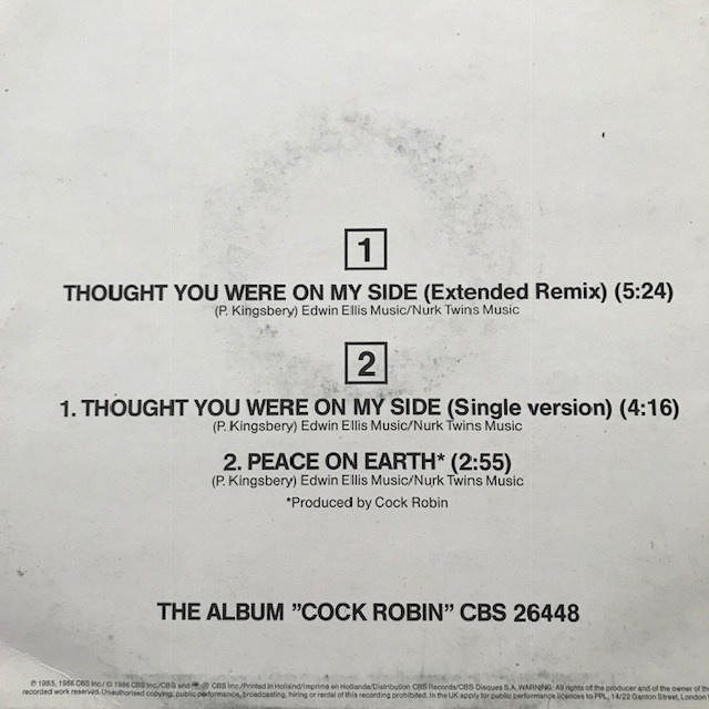 Cock Robin werd hot met de hit The Promise You Made, daarna hadden ze nog een aantal hits waaronder dit fijne Thought You Were On My Side.