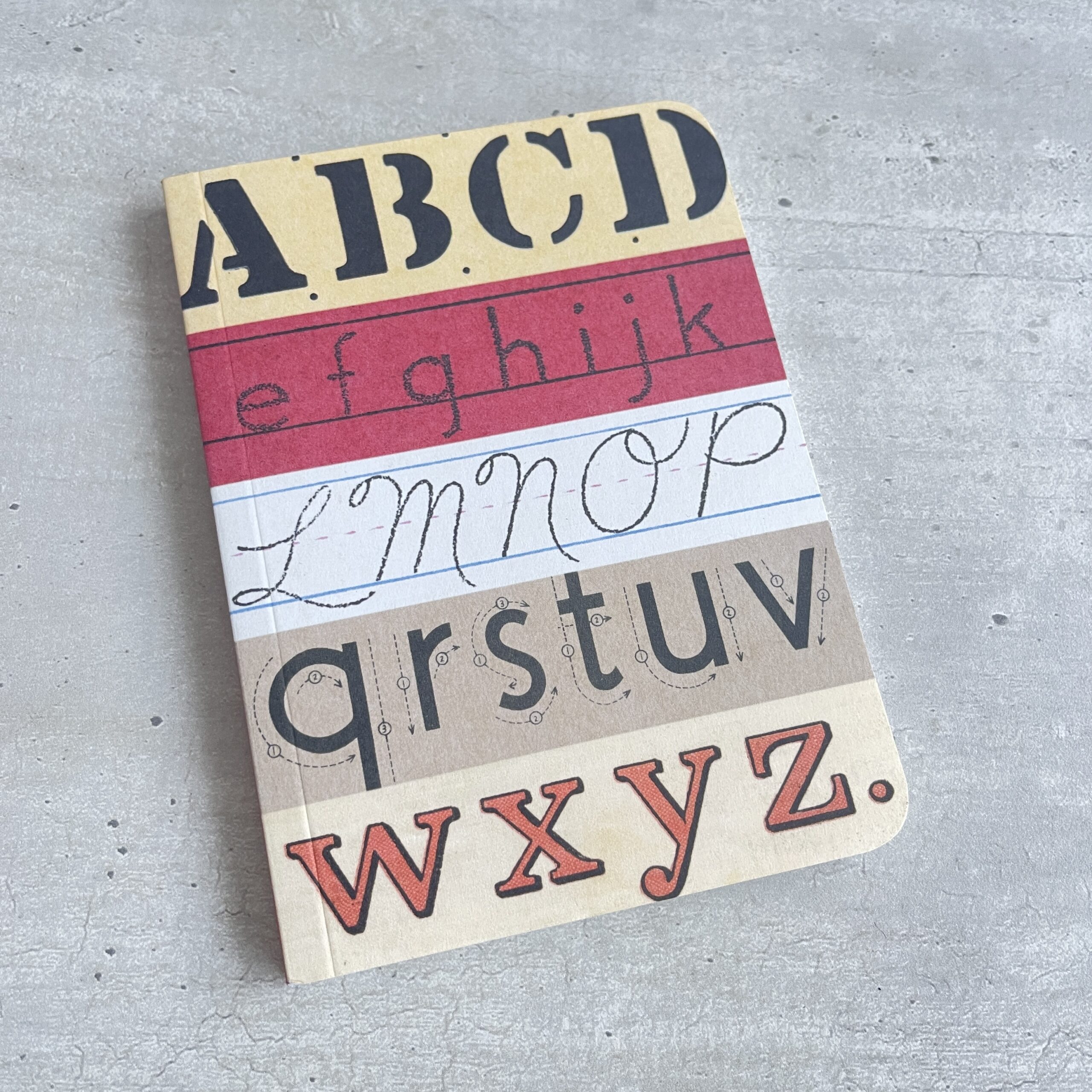 Leuk notebook met ‘vintage’ letters op het omslag.