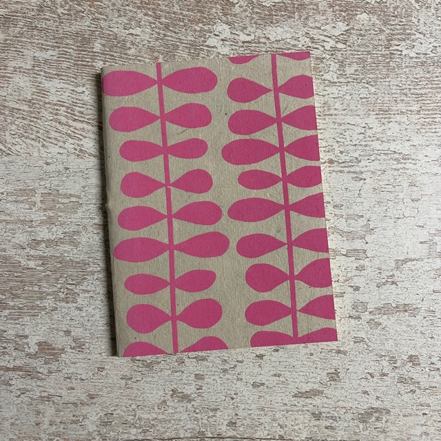 Leuk klein notebook van papier gemaakt van de lokta plant in Nepal. Het is volledig eco-friendly en fairtrade gemaakt en 100% handmade. Binnenkant gelinieerd. Perfect voor in de tas of op het nachtkastje! Deze print lijkt heel erg op die retro print van Orla Kiely.