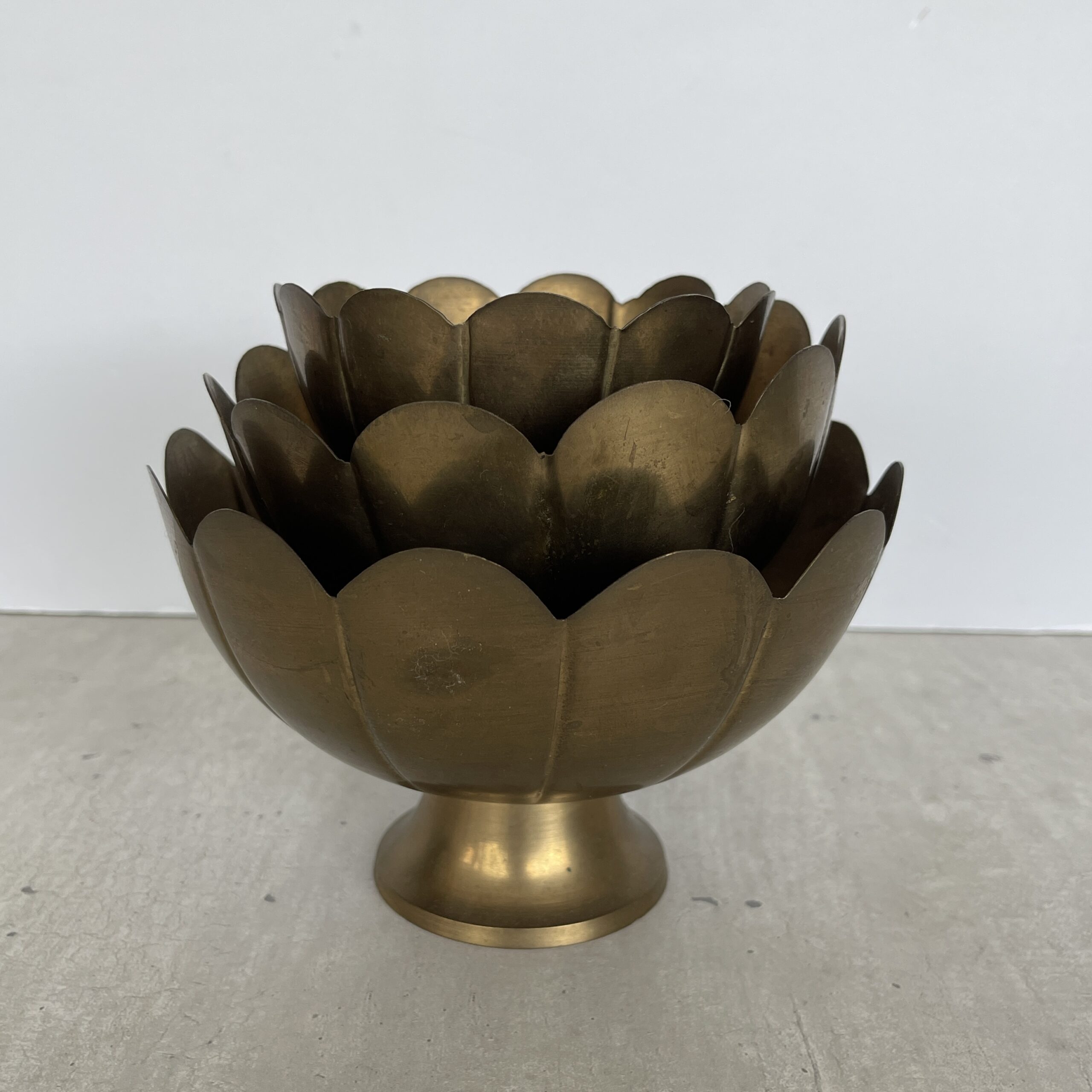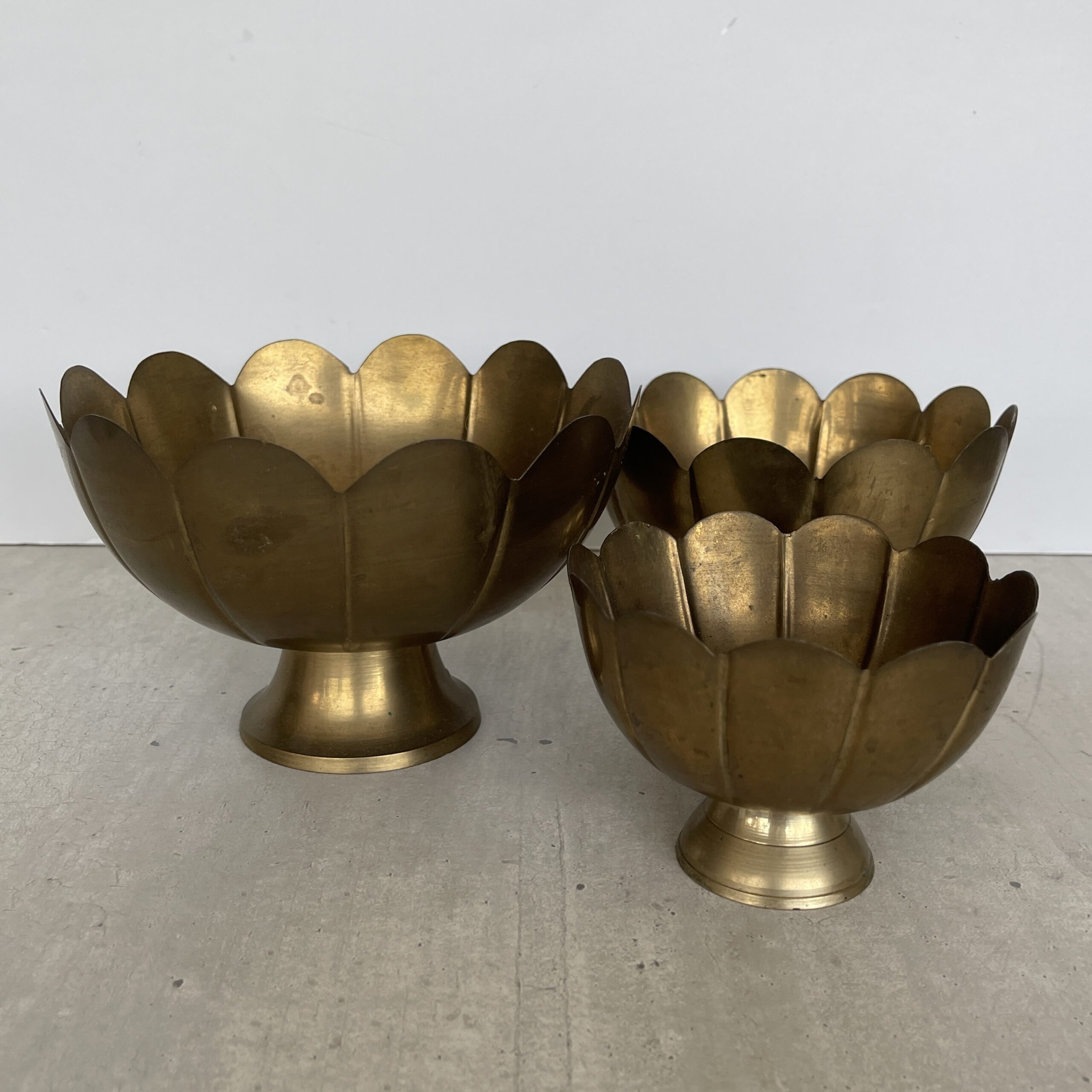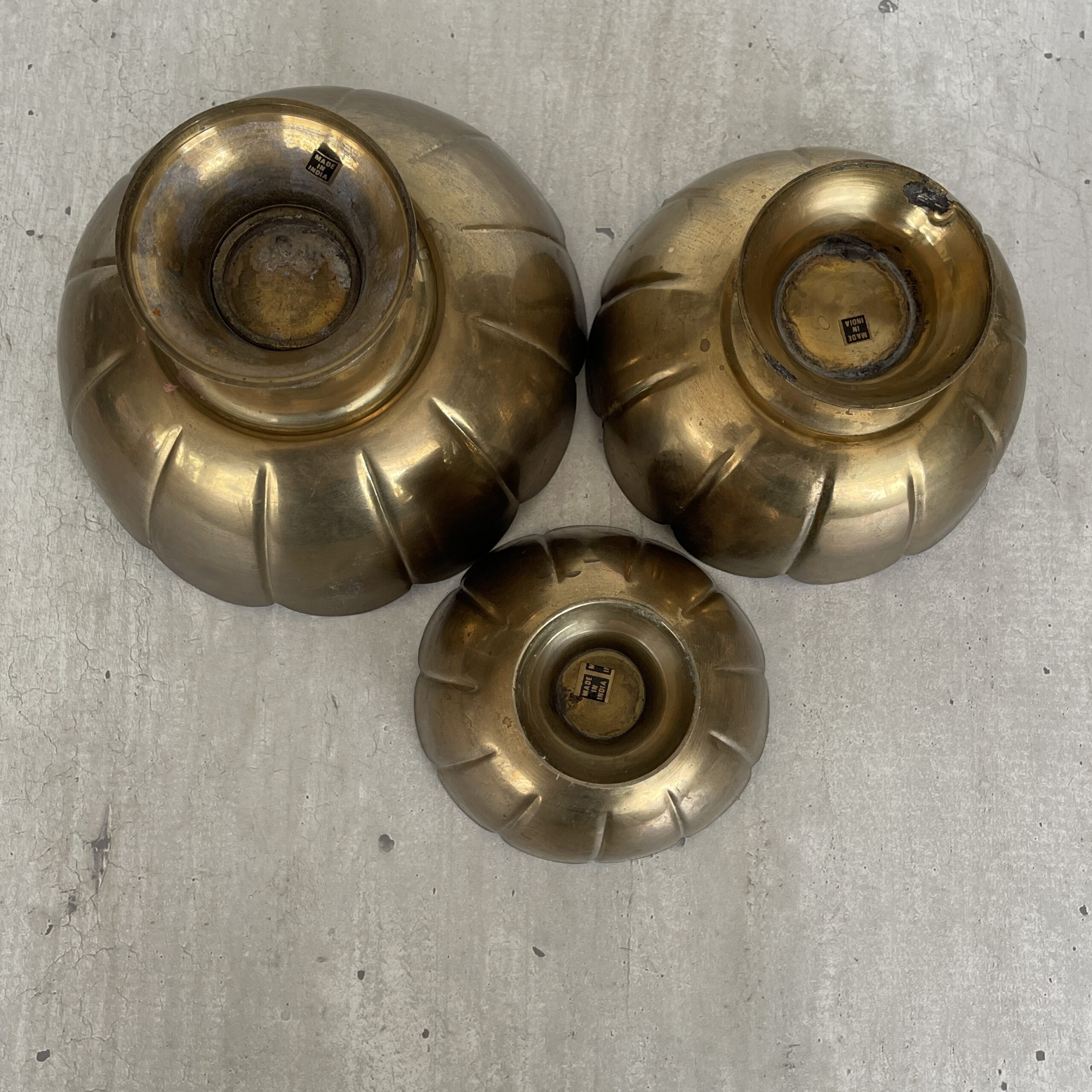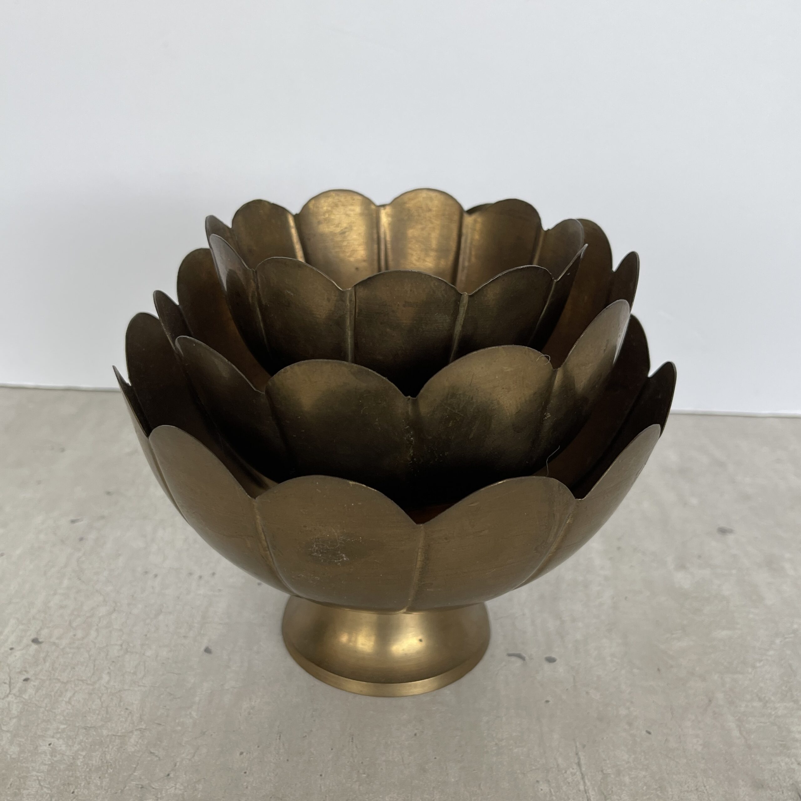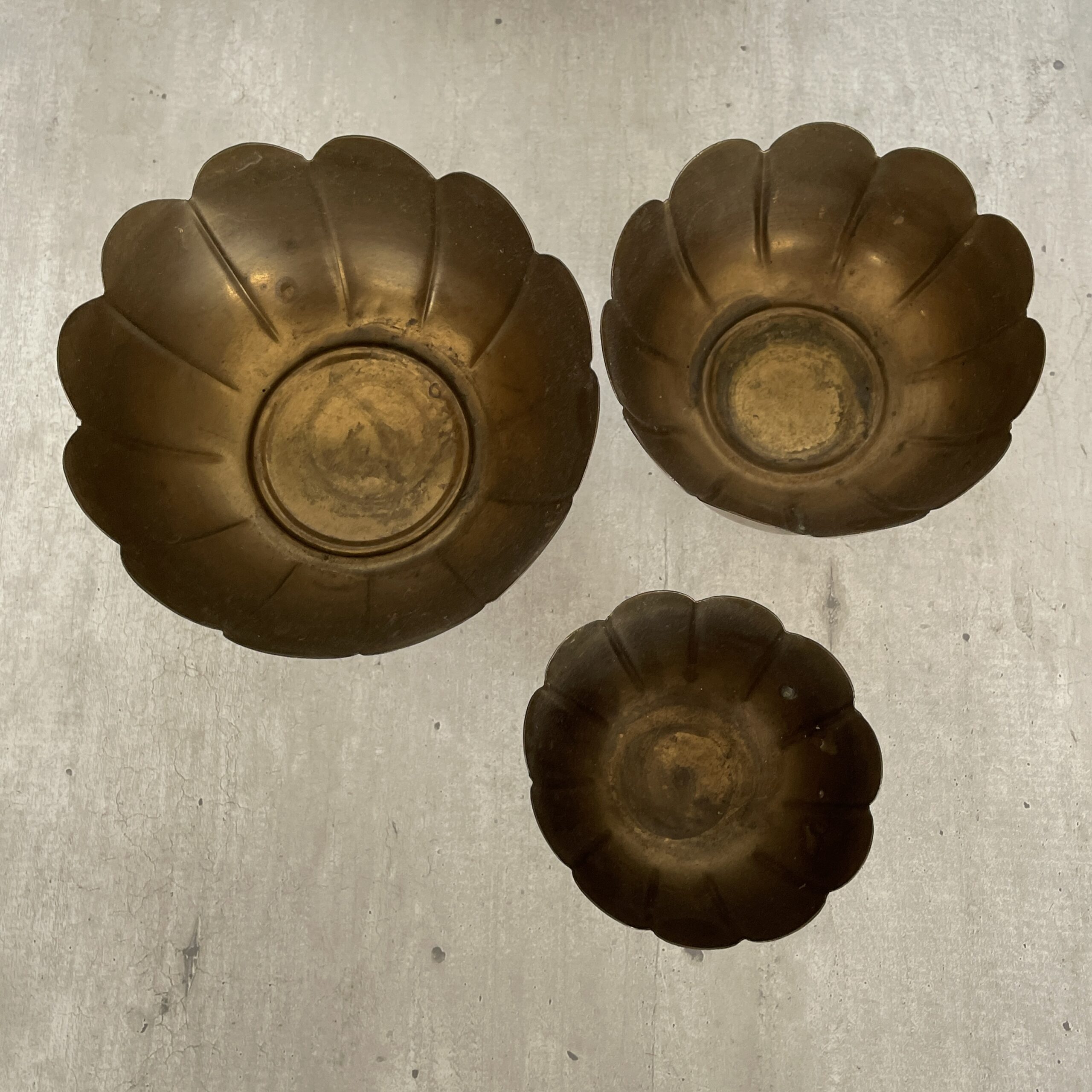Oef, wat een mooie set dit! Deze vintage schalenset Lotus is gemaakt in India van koper. Ze zijn zo mooi! Een beetje verweerd wat ze nog meer karakter geeft. Allemaal op een voetje, wat ze doet zweven. Leuk voor sieraden, mooie edelstenen en natuurschatten, je sleutels et cetera.