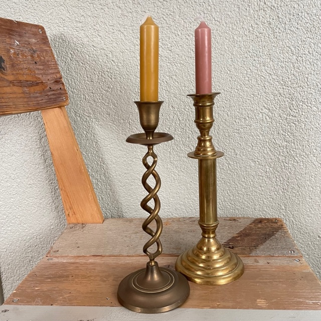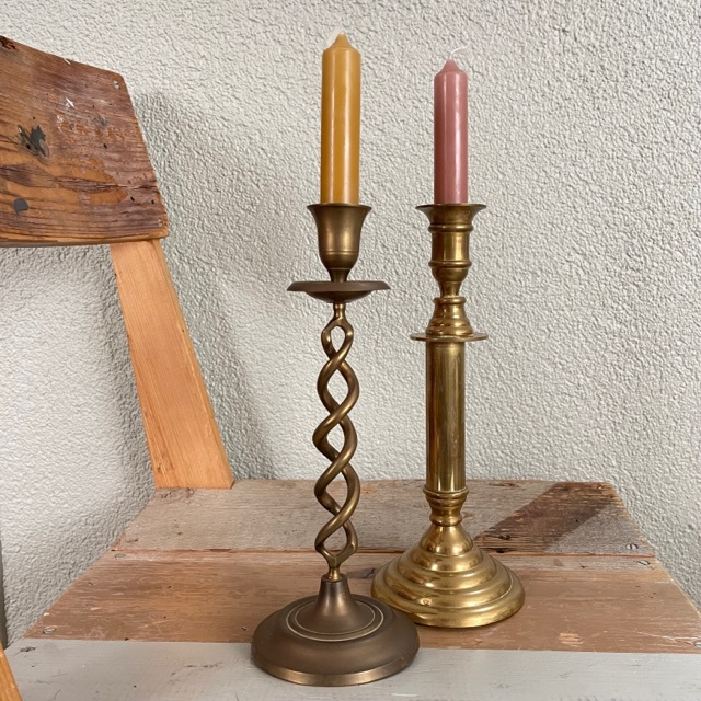 Mooie messing vintage gedraaide kandelaar, ofwel ‘swirl’.