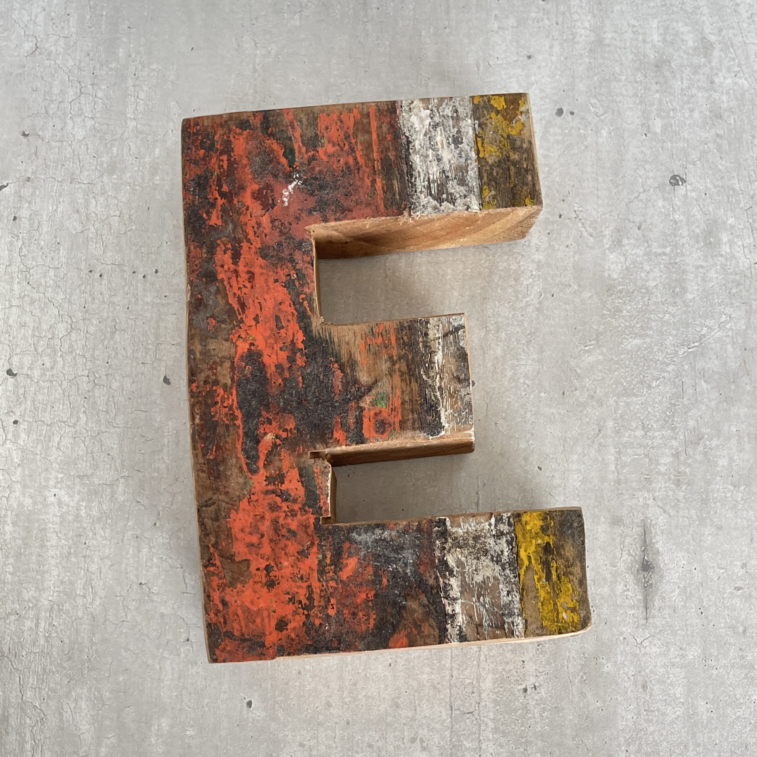 Leuke letter E van sloophout met aan de achterkant een haakje om ‘m op te hangen.