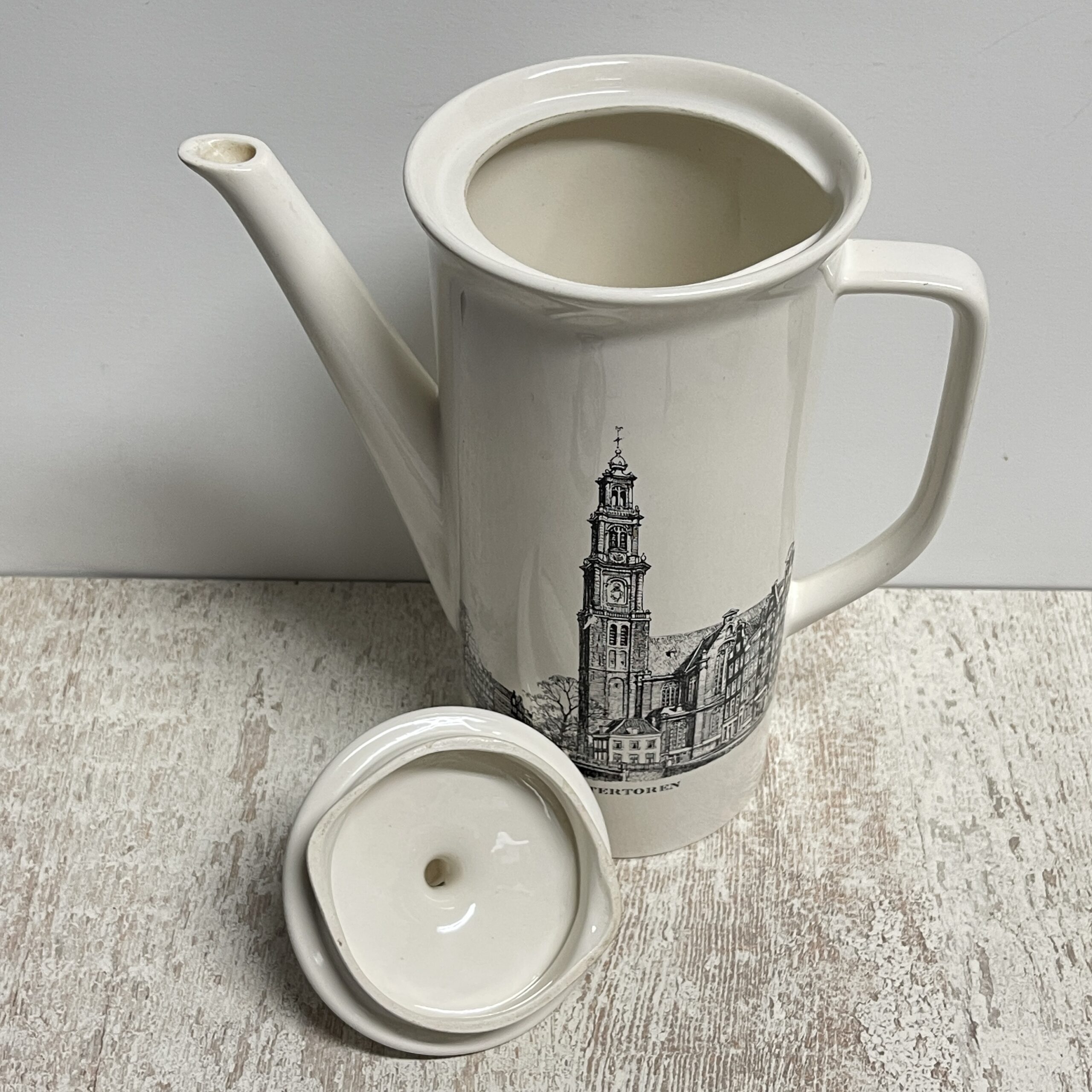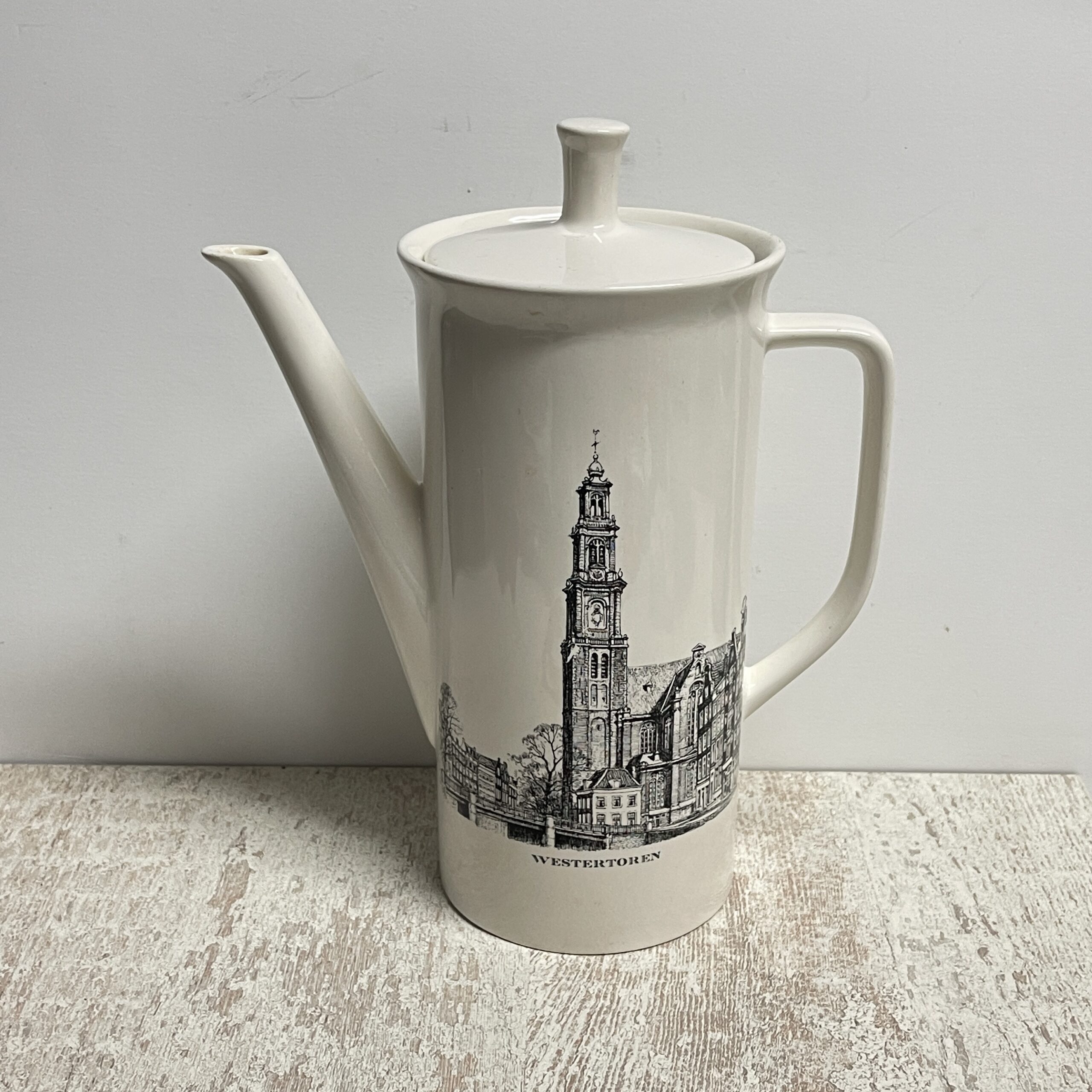 Mooie theepot ‘Amsterdam’ onderdeel van het stedenservies van Villery & Boch. Een mooi strak model met zwarte opdruk van de Westertoren. Een must have voor de Amsterdammer en een leuk cadeautje voor iemand die in Amsterdam woont!