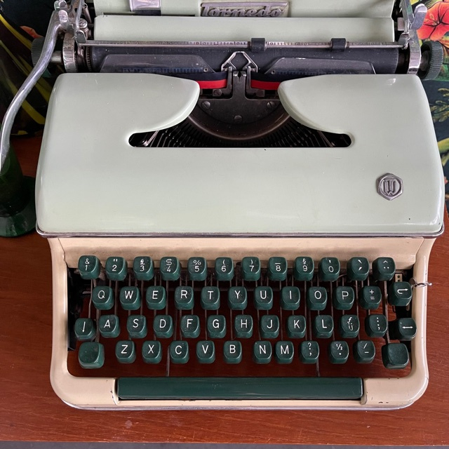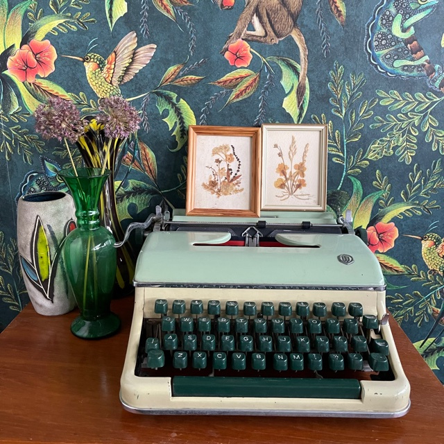 Toffe vintage typemachine model Torpedo uitgevoerd in two tone groen. Leuk als woonaccessoire met bijvoorbeeld leuke post, een lief kaartje of een stoere miniposters erop. Natuurlijk kun je ‘m ook nog gewoon gebruiken waar ‘ie voor bedoeld is!* Ook erg leuk voor de kids bijvoorbeeld, zo kunnen zij ook leren hoe ’t typen eraan toe ging voor de computer kwam!