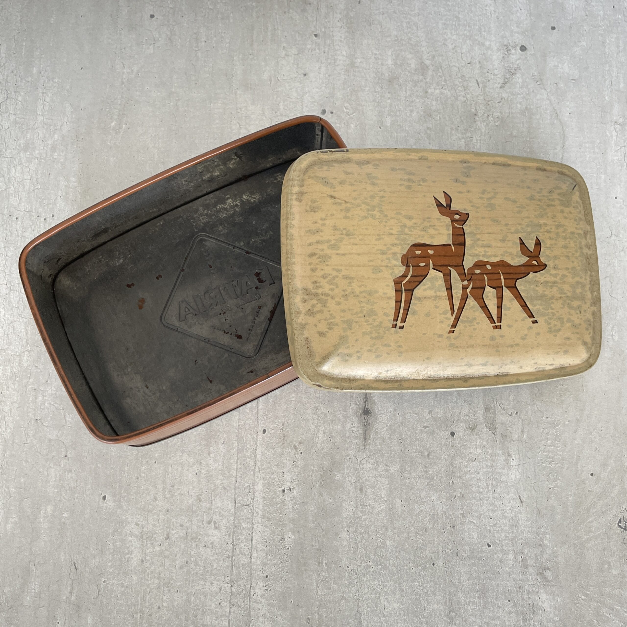 Gek op hertjes? Dan is dit vintage blik – uit waarschijnlijk de 60s – met hertjes iets voor jou! Je kunt er van alles in bewaren, van lekkere snacks voor je huisdier, tot koek, pennen en potloden, masking tape en nou ja, wat niet?!