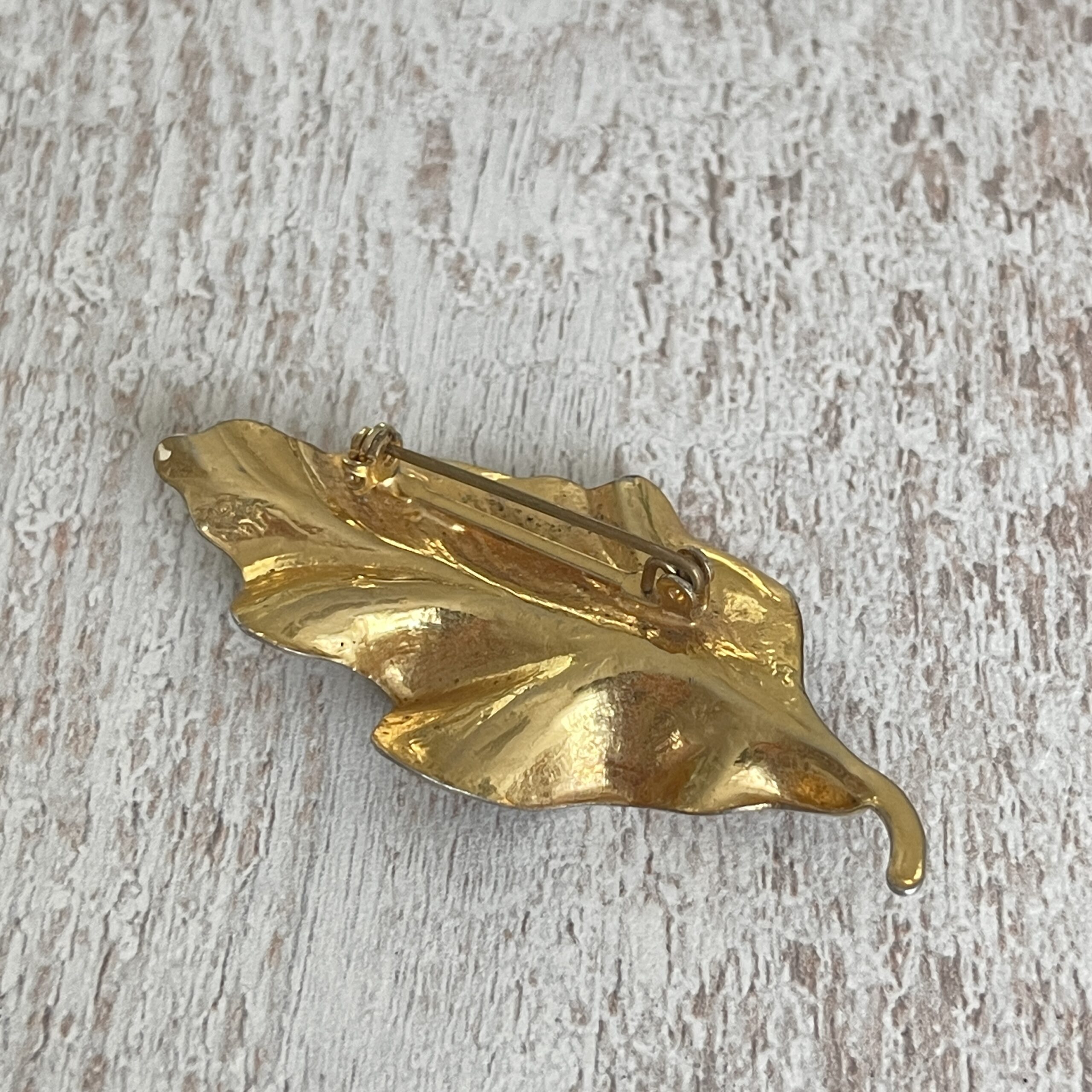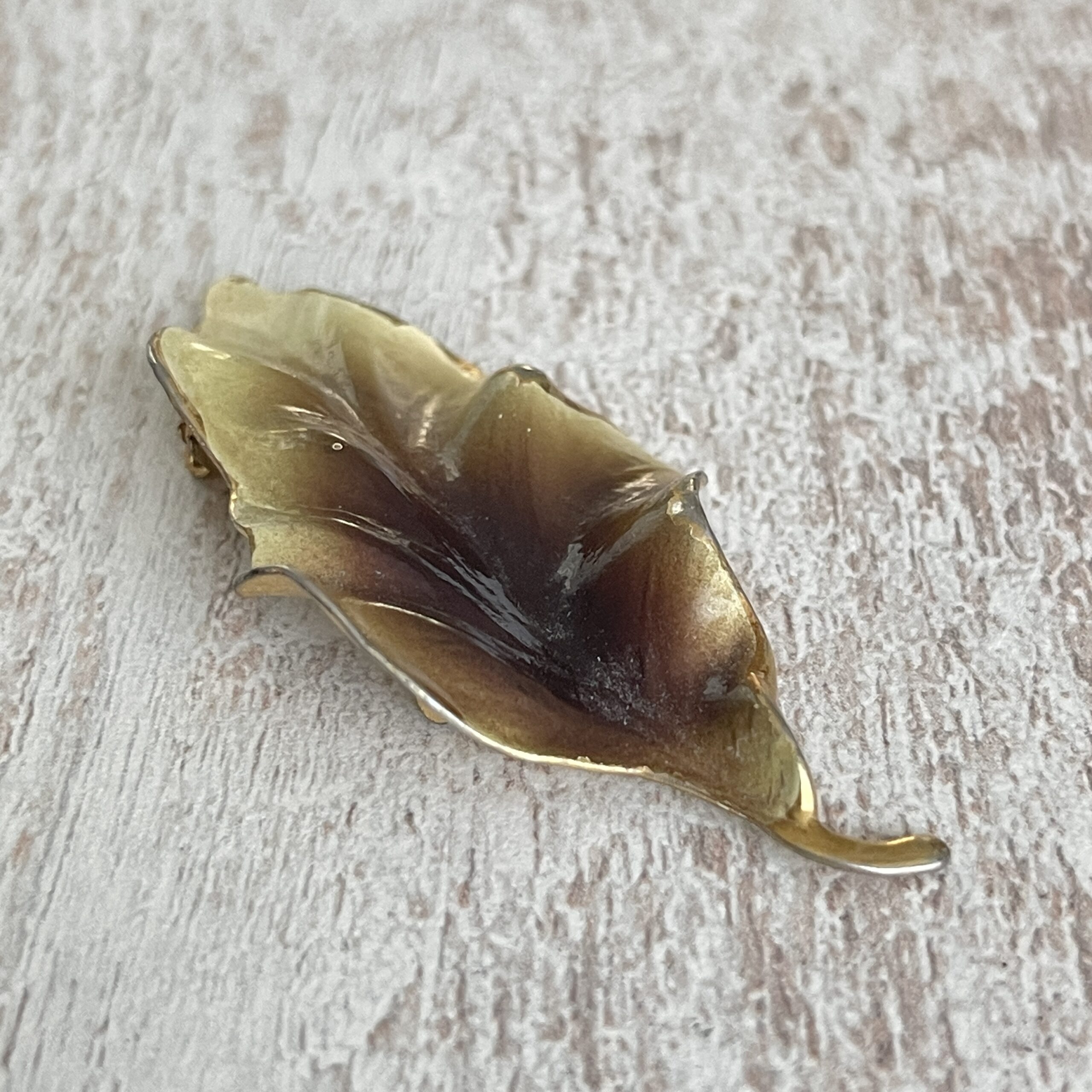 Leuke vintage broche, waarschijnlijk 70s/80s, in de vorm van een blad.