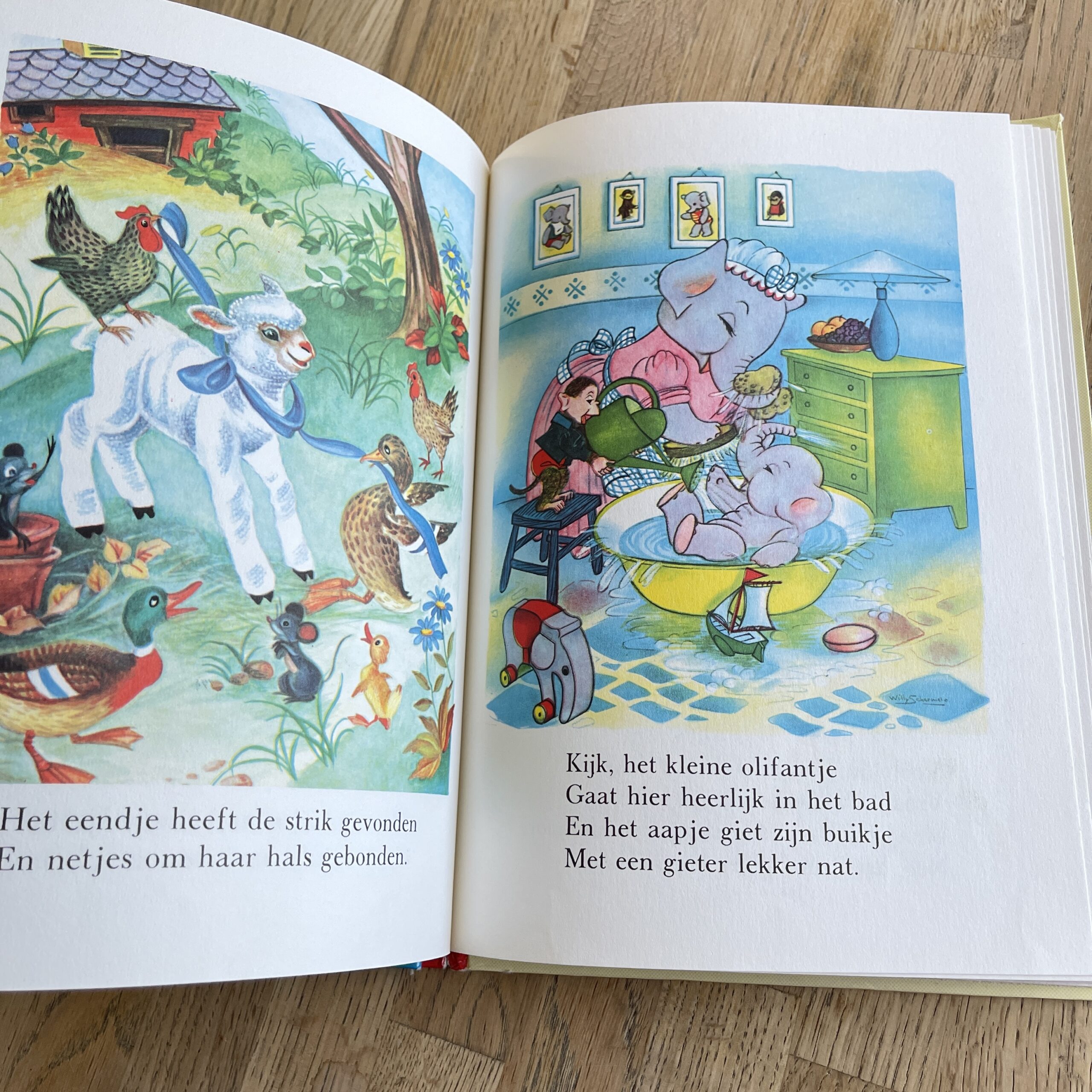 Lief vintage prentenboek met verhaaltjes en avonturen over een beer, een hondje, konijntje, lammetjes, giraf, aapje, olifant en meer. Maar bovenal met de mooiste kindertekeningen! Ook leuk om de tekeningen te fotograferen en als kunstwerkjes ophangen in de kinderkamer.