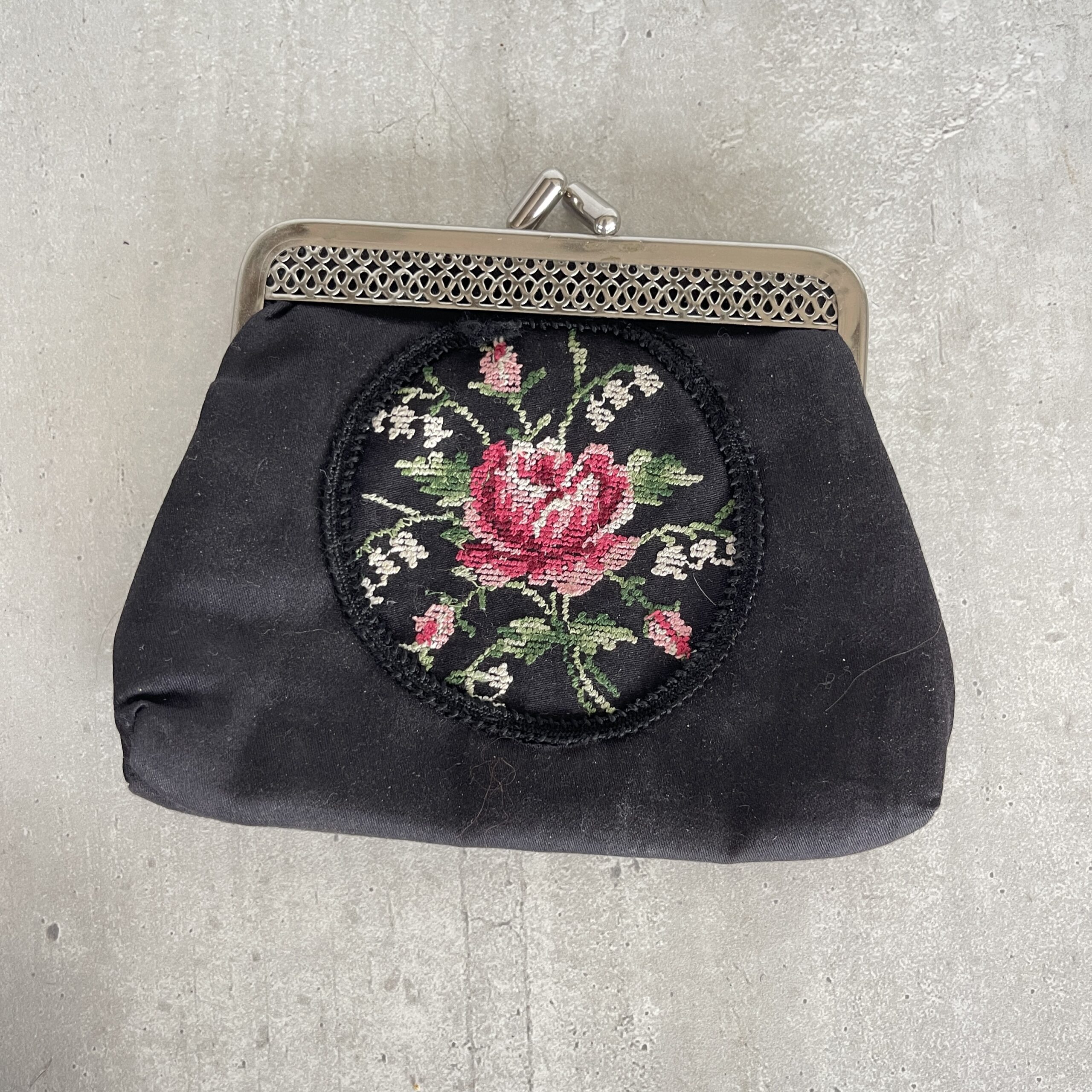 Leuk vintage portemonnee van stof met borduurwerkje. Om geld in te bewaren natuurlijk, maar ook leuk voor wat kleine spulletjes in je tas zoals lipstick en je sleutels bijvoorbeeld.