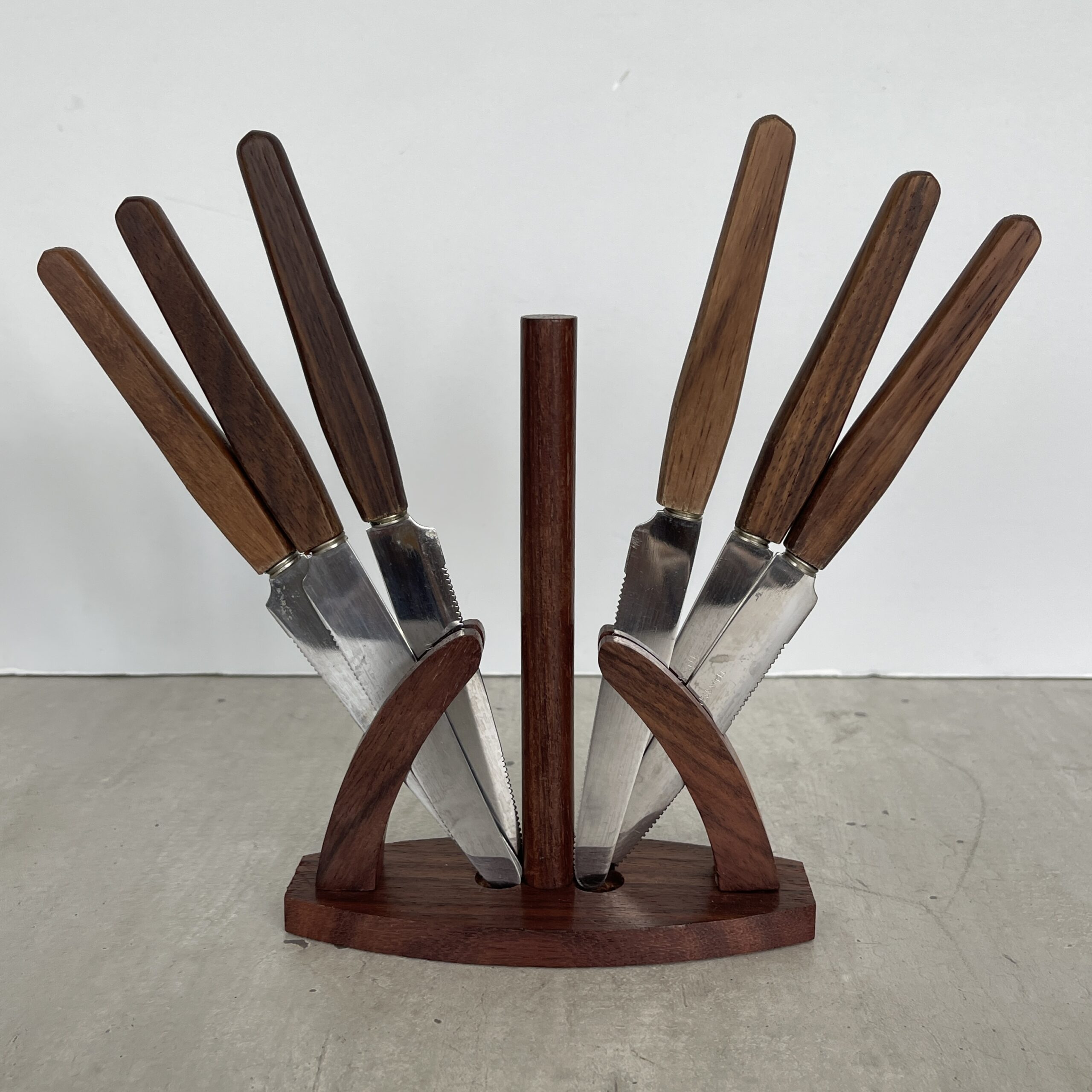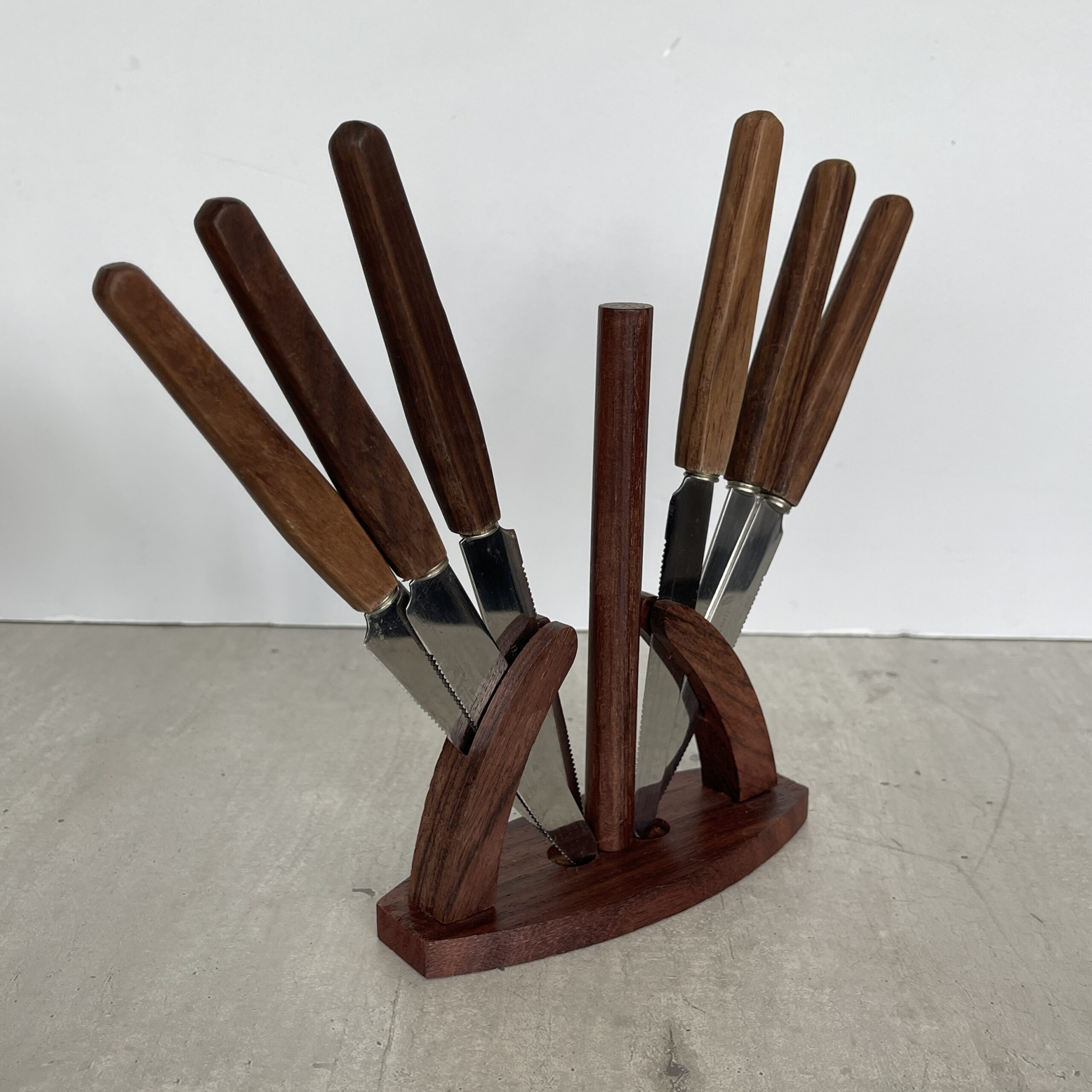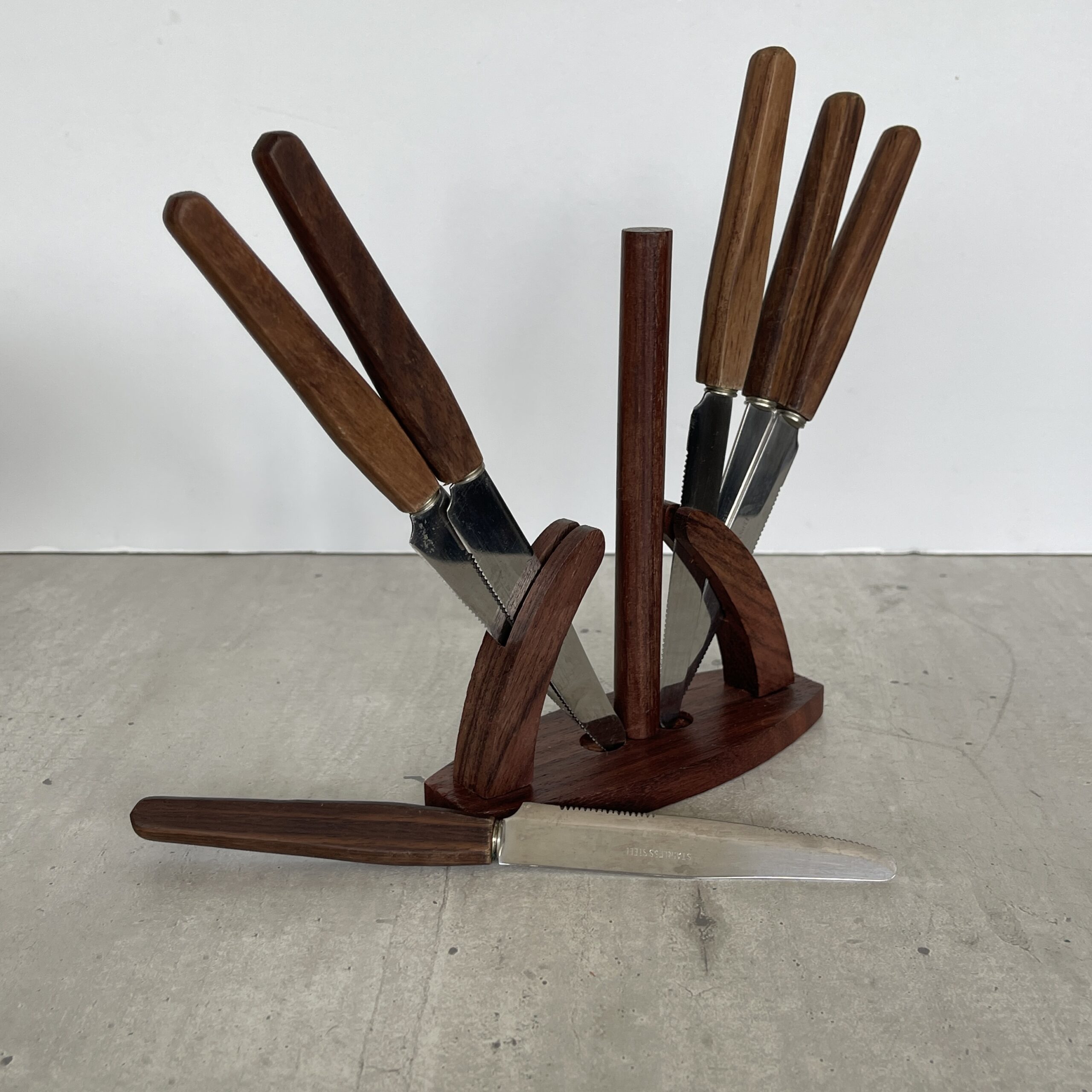 Vintage Scandinavisch houten messenset uit, waarschijnlijk, Denemarken.