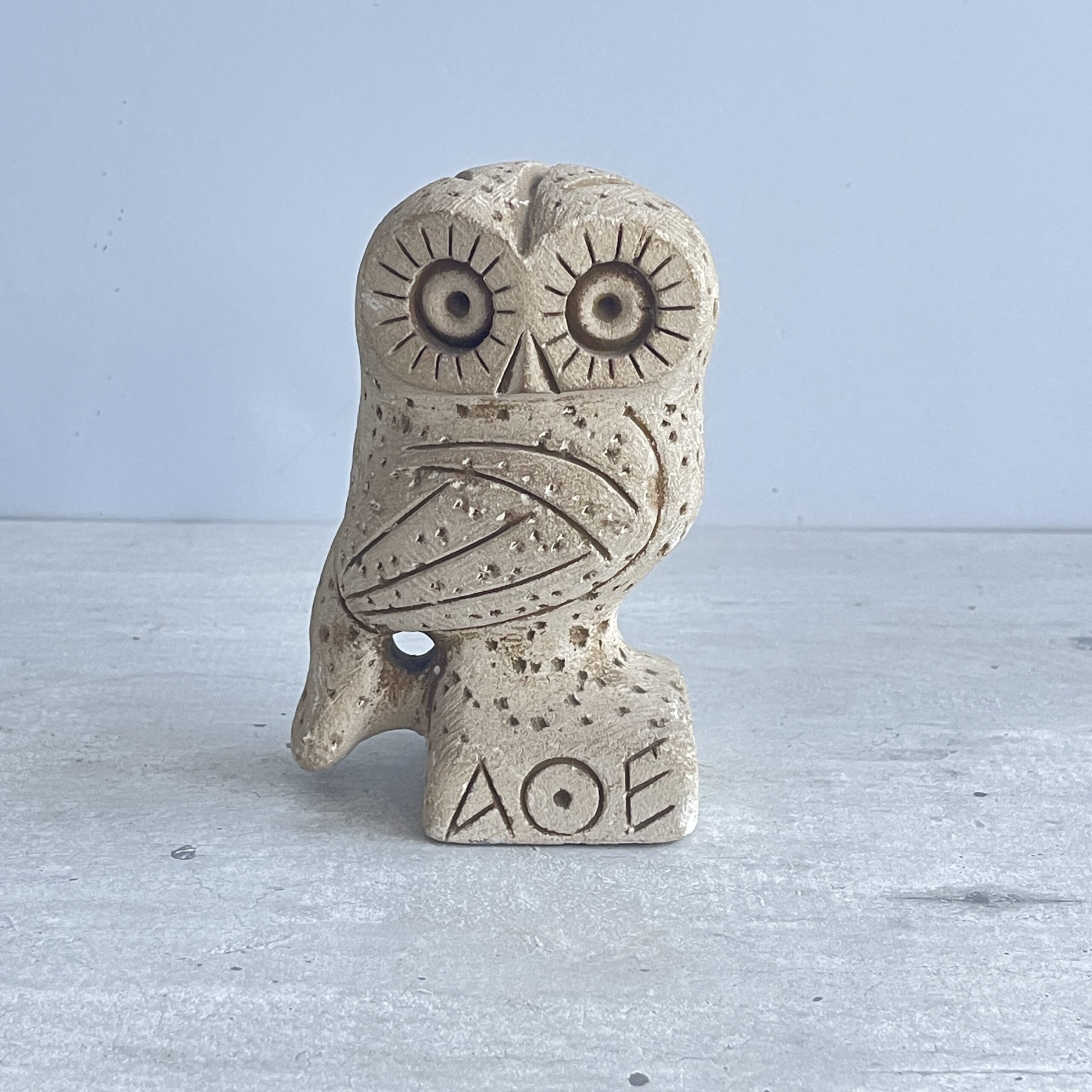 Deze mooie vintage uil (AOE) komt uit Griekenland en is een waar verzamelobject! En dat snappen we wel, intrigerend mooi gemaakt. Het is zogenaamde ‘vintage stoneware’. Leuk in een collectie van uiltjes of als blikvanger alleen, al dan niet onder een stolpje.